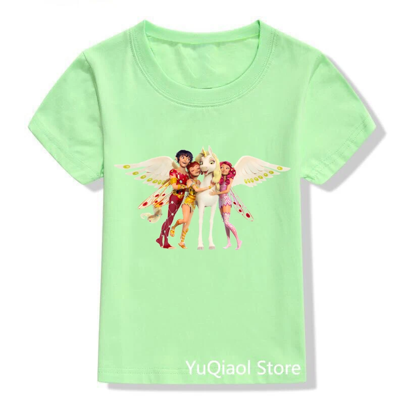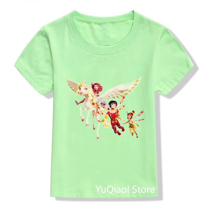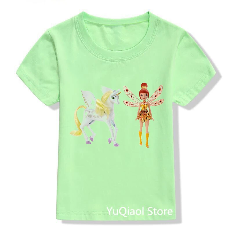 Футболка для девочек, с милым рисунком единорога, сказочной принцессы, Миа и я, летняя детская футболка, милые топы, одежда для мальчиков (зеленый)