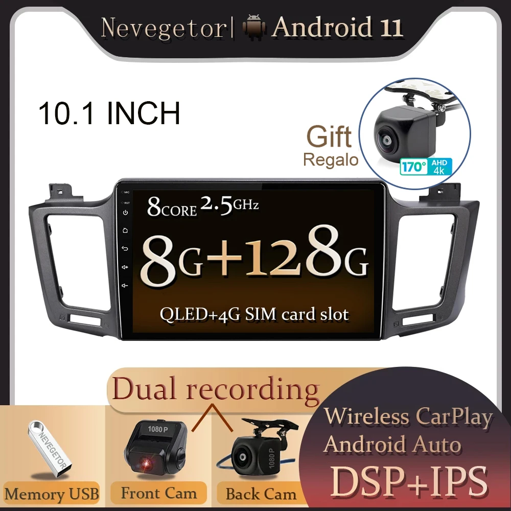Автомобильная Мультимедийная система на Android 11, с голосовым управлением, 4G, GPS-навигацией для Toyota RAV4 2012, 2013, 2014-2018, 2 Din, без DVD