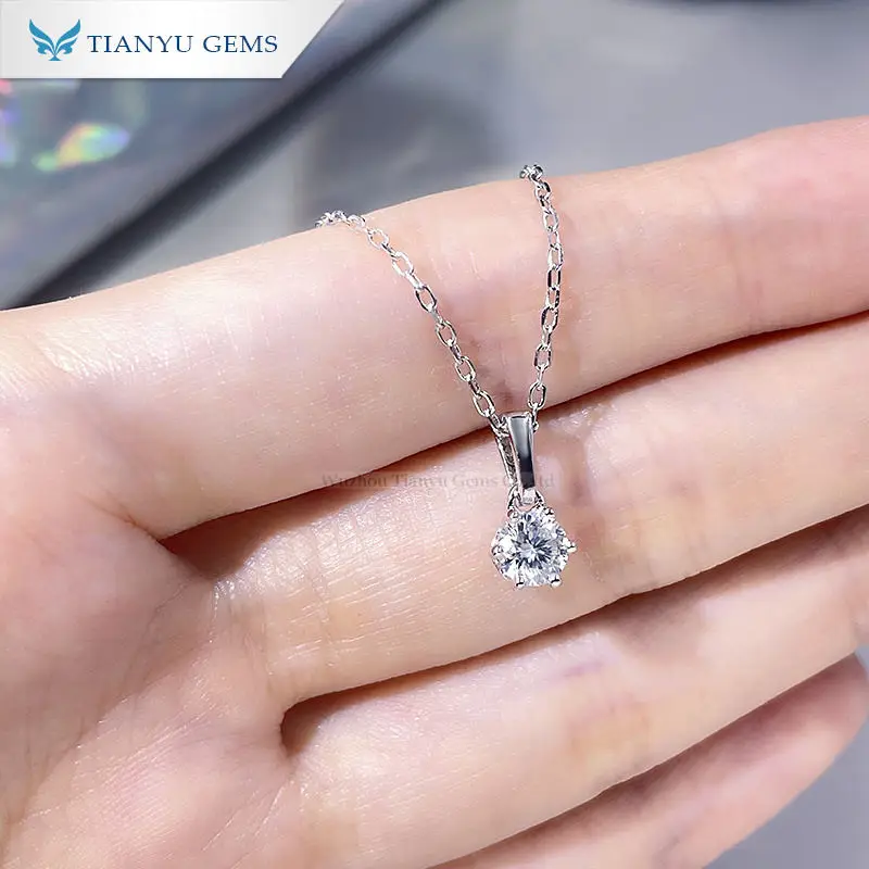 Tianyu Gems 925 Серебряное ожерелье 1 карат муассанит Подвески ожерелье 6,5 мм5 мм Бриллианты Женские свадебные позолоченные цепочки ювелирные изделия