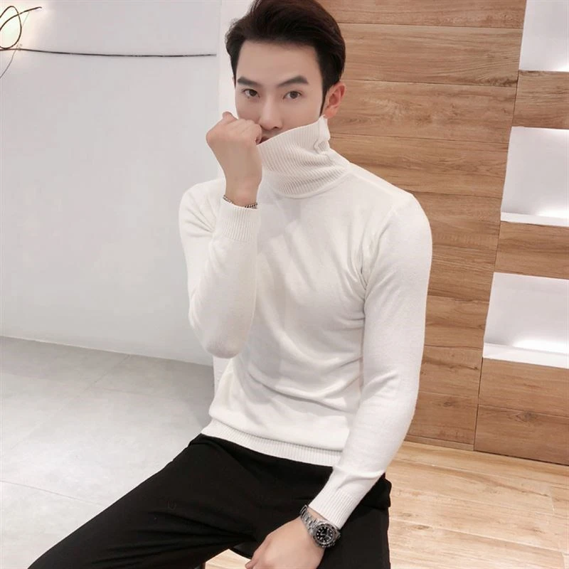 high-neck Elastic sweaters menMen'S Turtleneck Solid Color sweaters