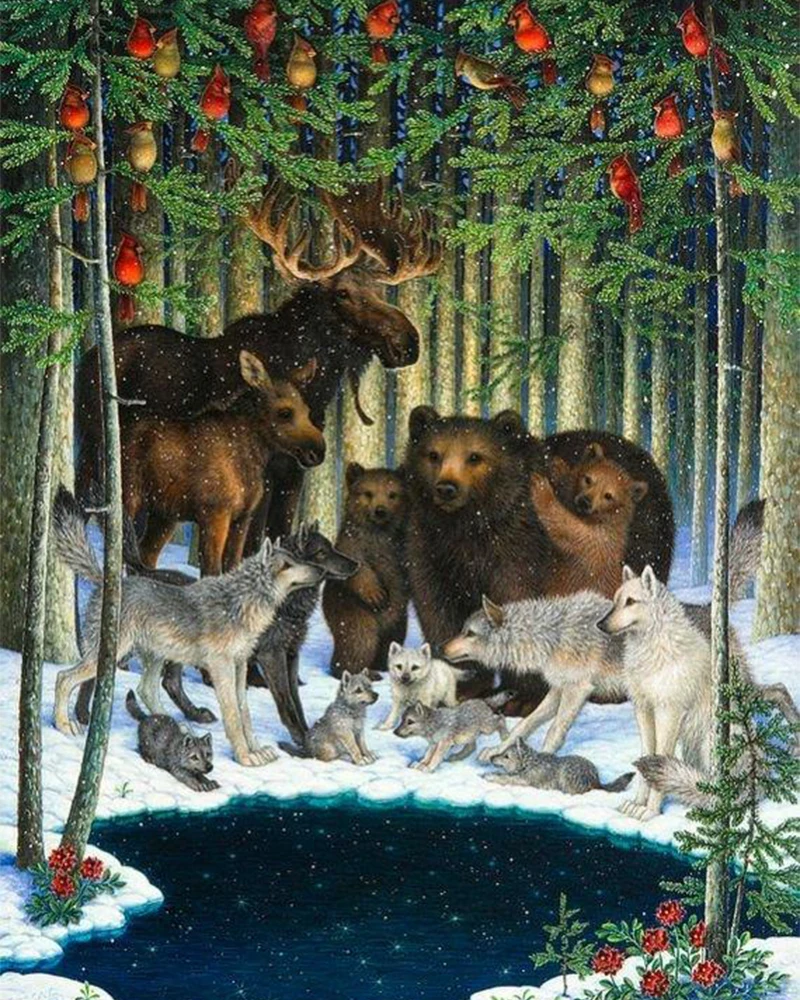 Раскраска по номерам для взрослых, без рамы, зимний пейзаж