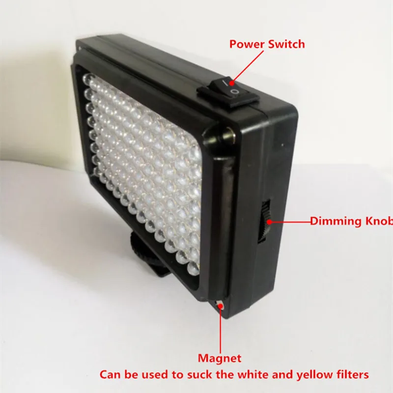 Этот видео светильник, есть 96 ламповых бусин, но громкость очень маленькая, легко носить с собой. Цвет температуры пленки с интересным дизайном великолепный камень, рынок очень много светильник Цвет пленка карты или винта с шляпкой в виде большого пальца в лампу, без каких-либо всасывающего камня, для того чтобы прийти гладко. Два цветовых ломтика температуры, чтобы достичь трансформации фотографических видов 3200K-5500K с самыми двумя значениями цветовой температуры. Дизайн очень двух точек, цветная температурная пленка или задняя крышка батарейного отсека, очень проста в использовании в взаимном переключателе