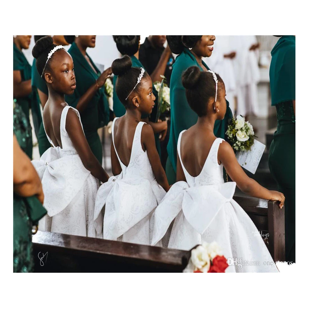 Очаровательные Белые платья с цветами для девочек на свадьбу с задн...