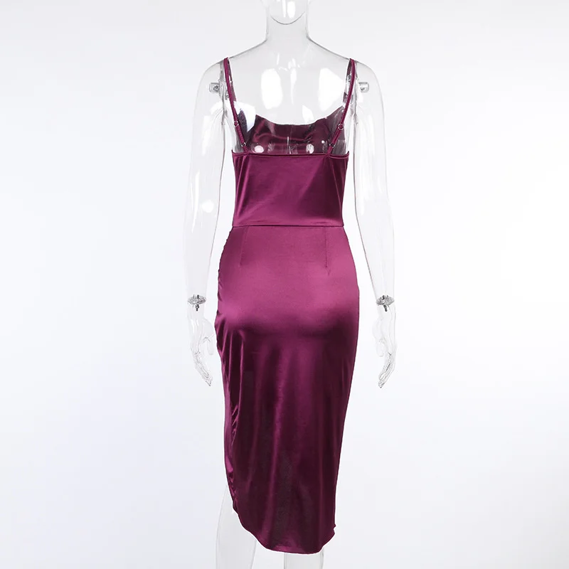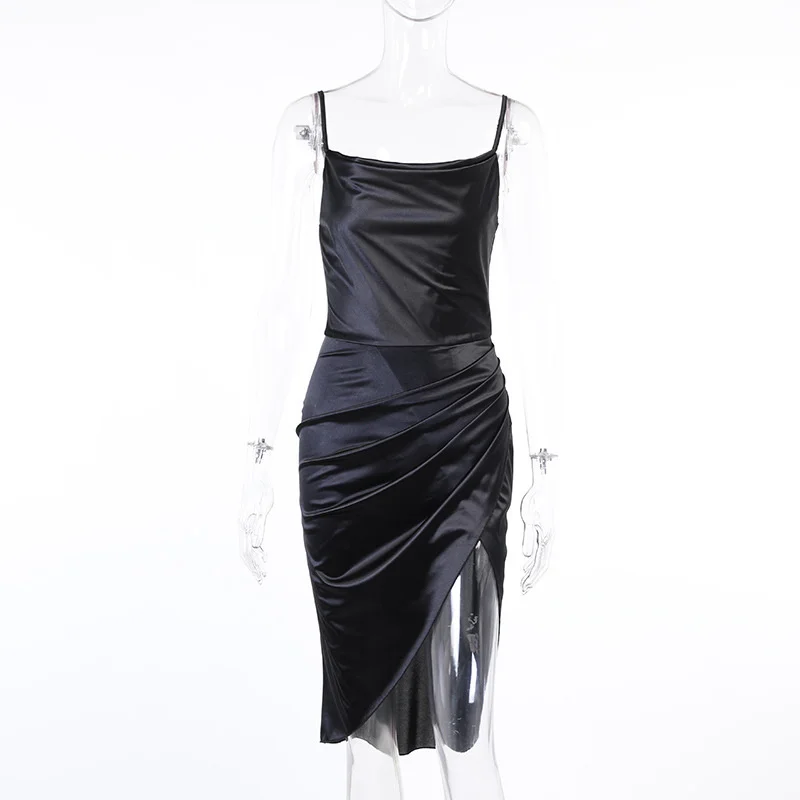 Атласное платье 4 #, приталенное однотонное сексуальное платье с ра...