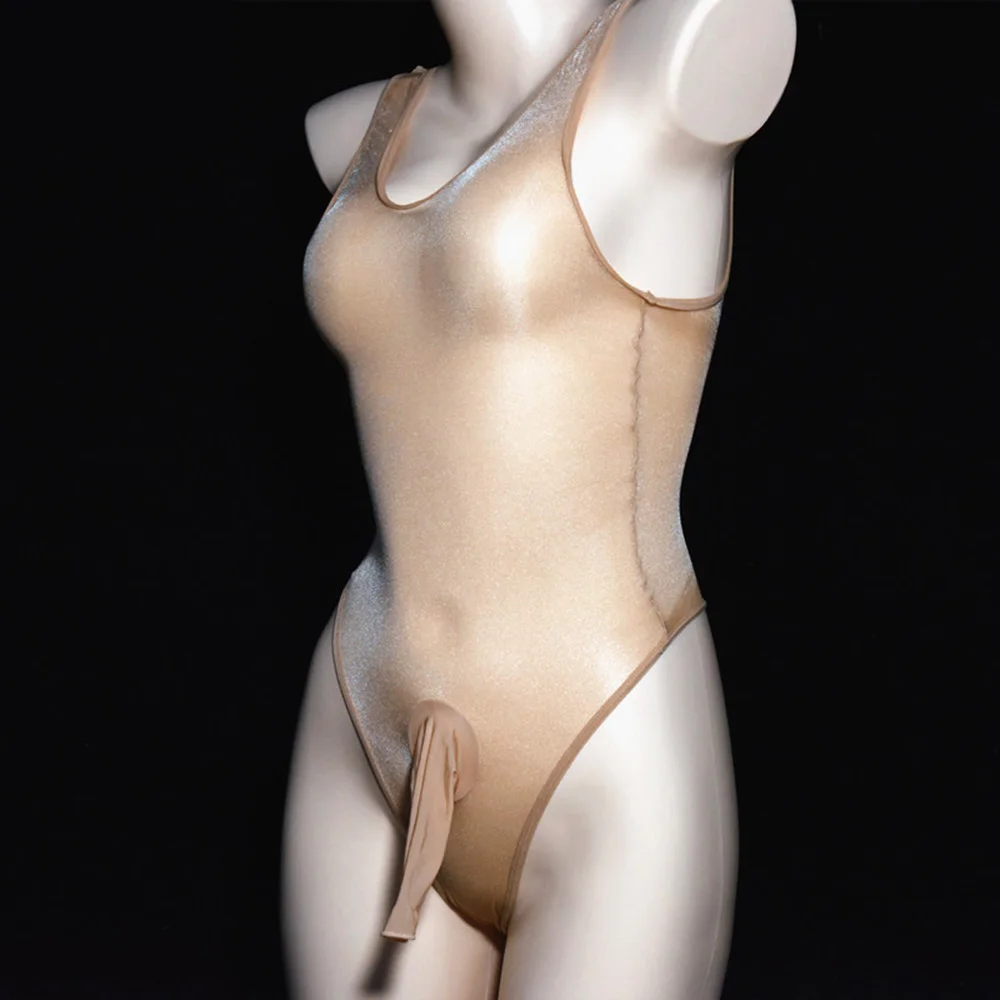 * Описание товара: мужское прозрачное боди-трико без рукавов на бретелях, прозрачные колготки