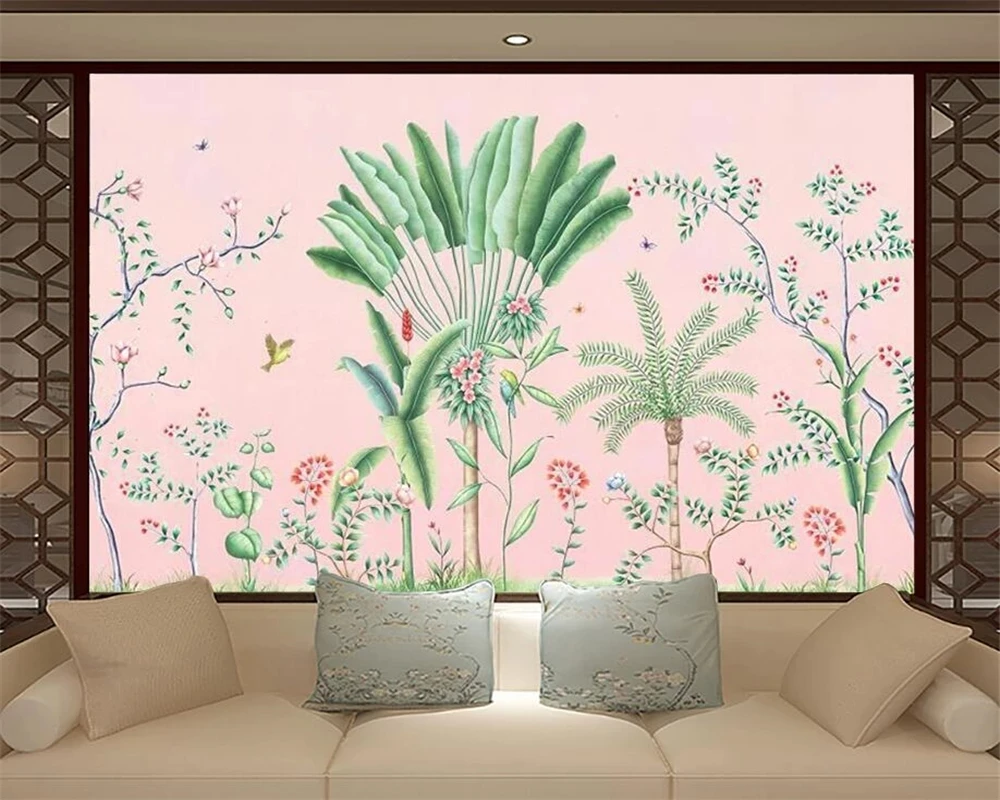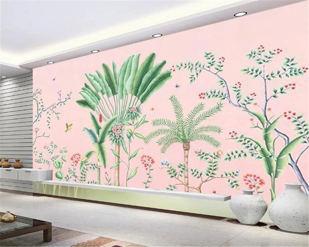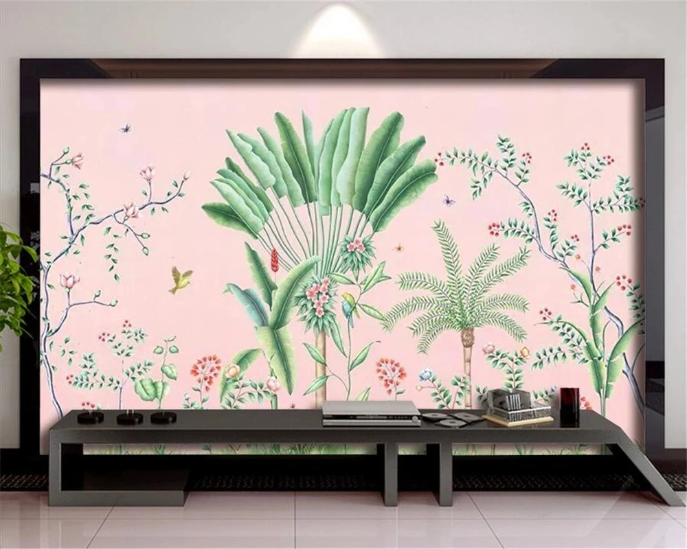 Самоклеящиеся обои на заказ, 3D Ручная роспись, банан, лист, растение, цветок, фон для телевизора, гостиной, спальни, домашнее настенное украшение