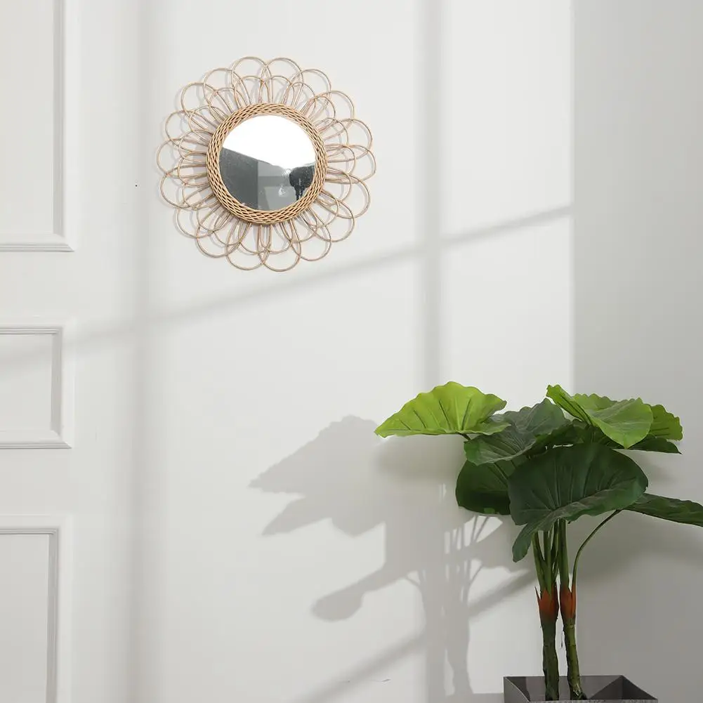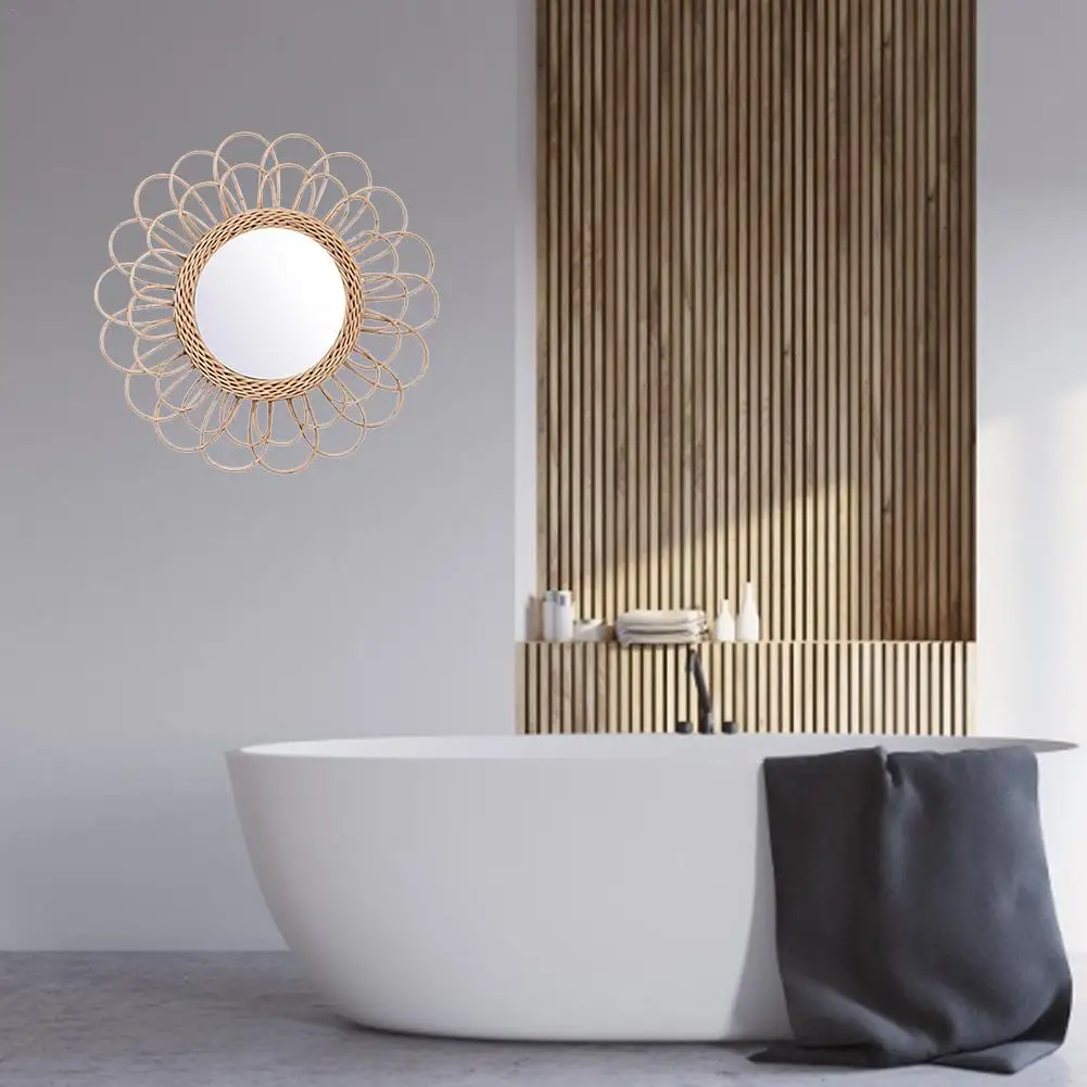 Висячее зеркало из ротанга, круглое настенное зеркало с подсолнухом...