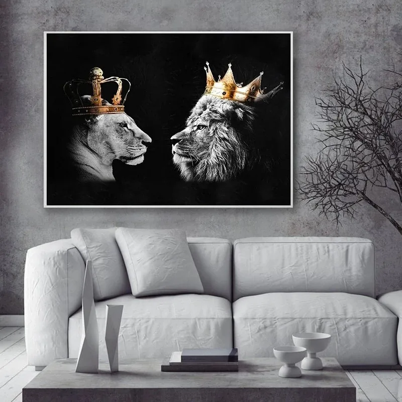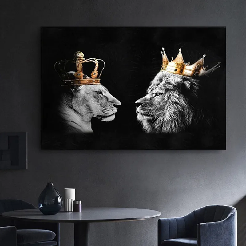 Черно-белая Картина на холсте с изображением короля льва картины с животными для гостиной современный домашний Декор без рамки настенное искусство
