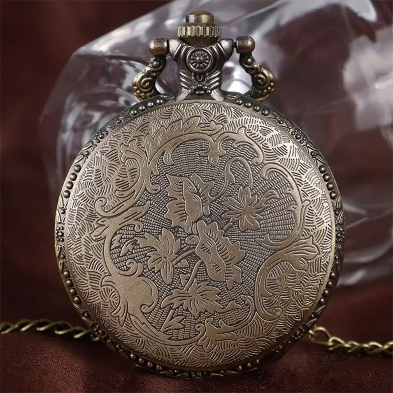 Карманные часы, кварцевые, винтажные, антикварные, римские, бронзовые, волка, тиснение, унисекс, подвеска на воротник, очаровательные подарки, стимпанк, цветочные
