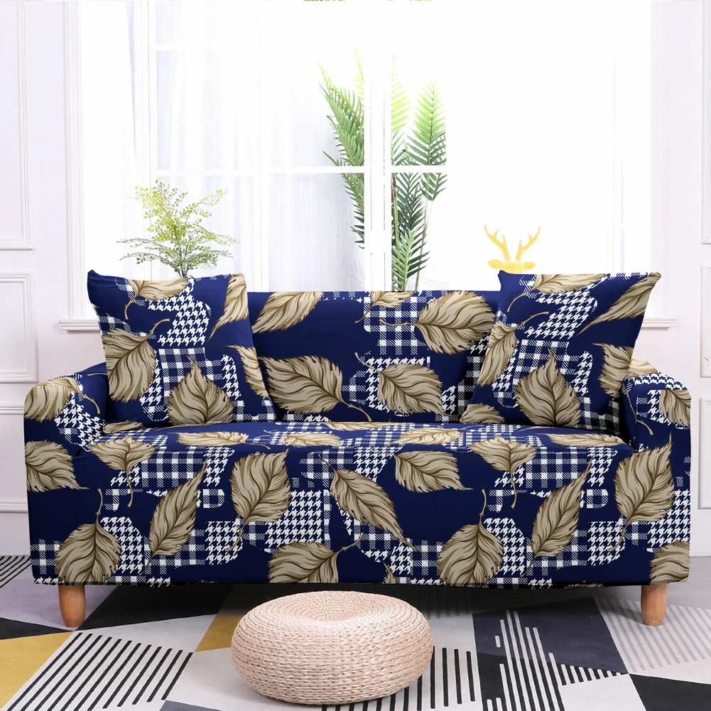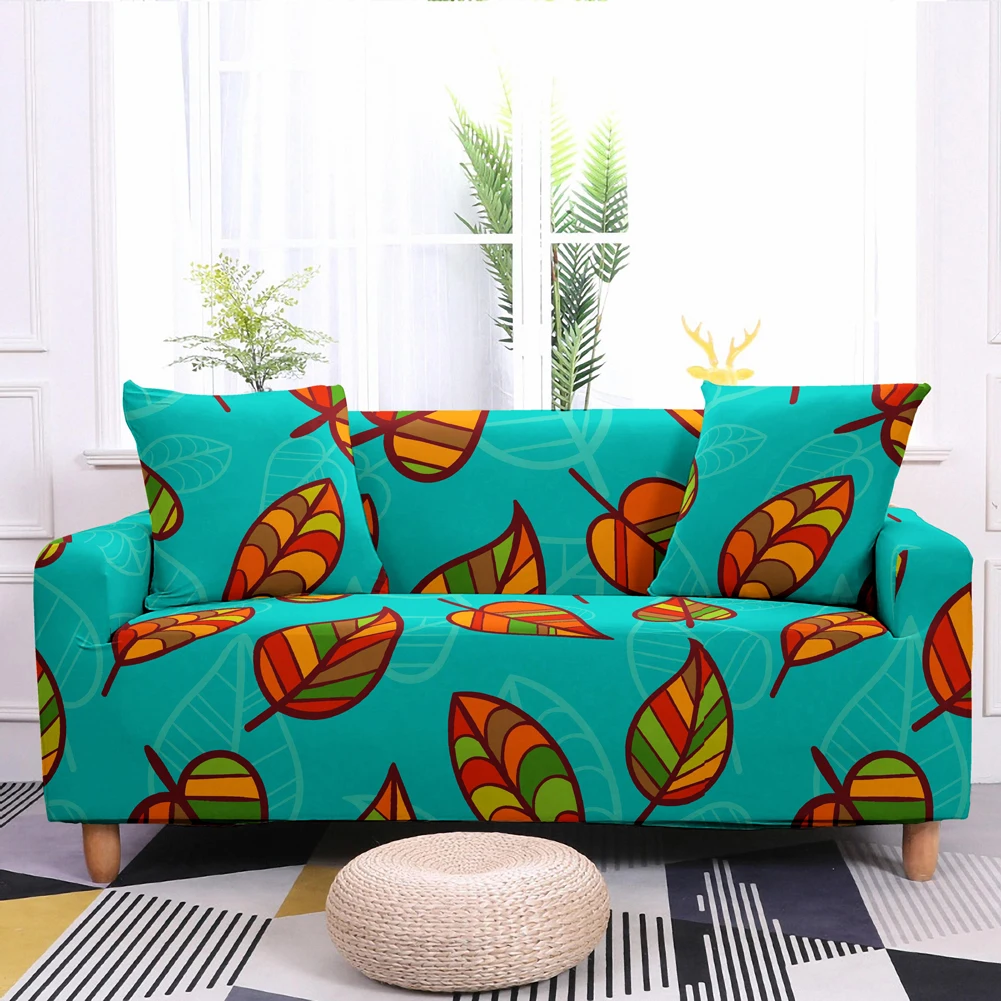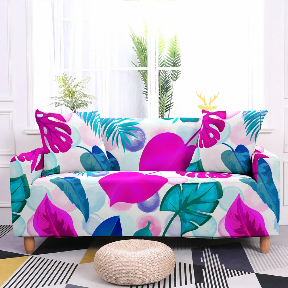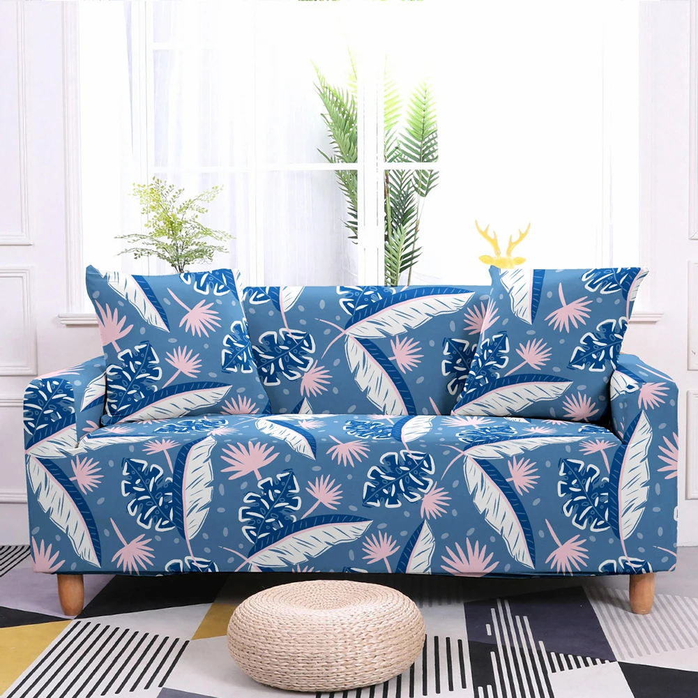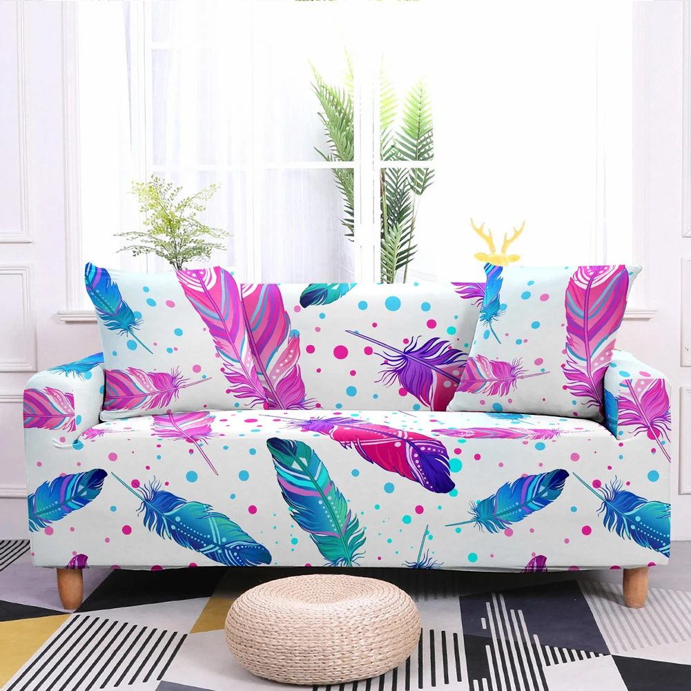 Эластичный чехол для дивана с принтом в виде перьев, полноразмерные Нескользящие Чехлы для дивана с тропическими листьями цветов, чехол для дивана в гостиной