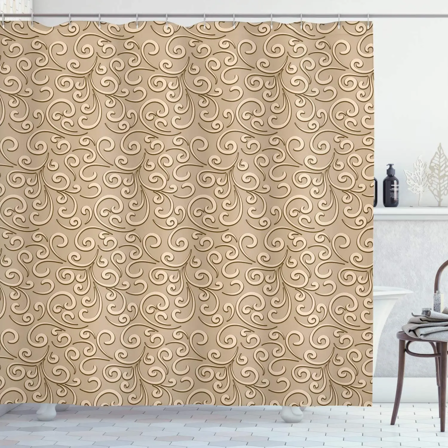 Бежевая занавеска для душа, водонепроницаемая занавеска для ванны в классическом викторианском стиле с цветочным узором в стиле барокко, разные размеры