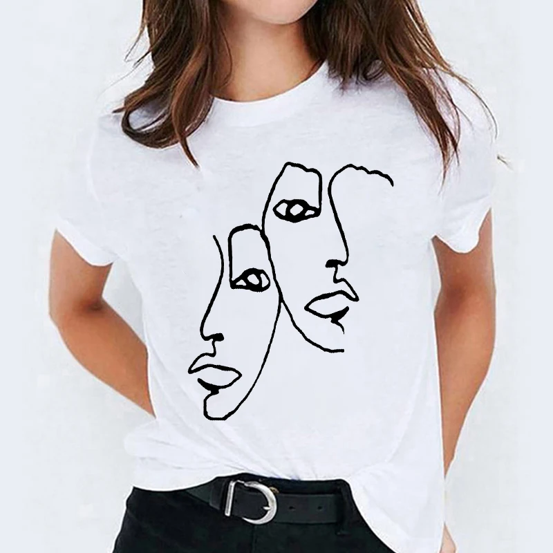 Футболка женская оверсайз с коротким рукавом, топ с абстрактными линиями и надписью для отдыха, одежда для пар, лето 2021