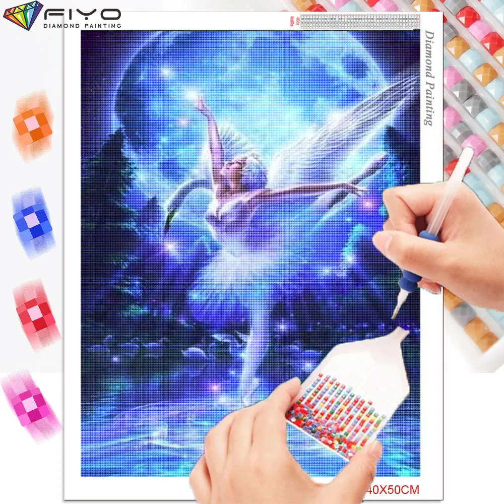 Набор для алмазной живописи ангельская женщина FIYO с крыльями, полностью круглая Алмазная 5D Вышивка Фея девочка, вышивка крестиком, мозаика, домашний декор