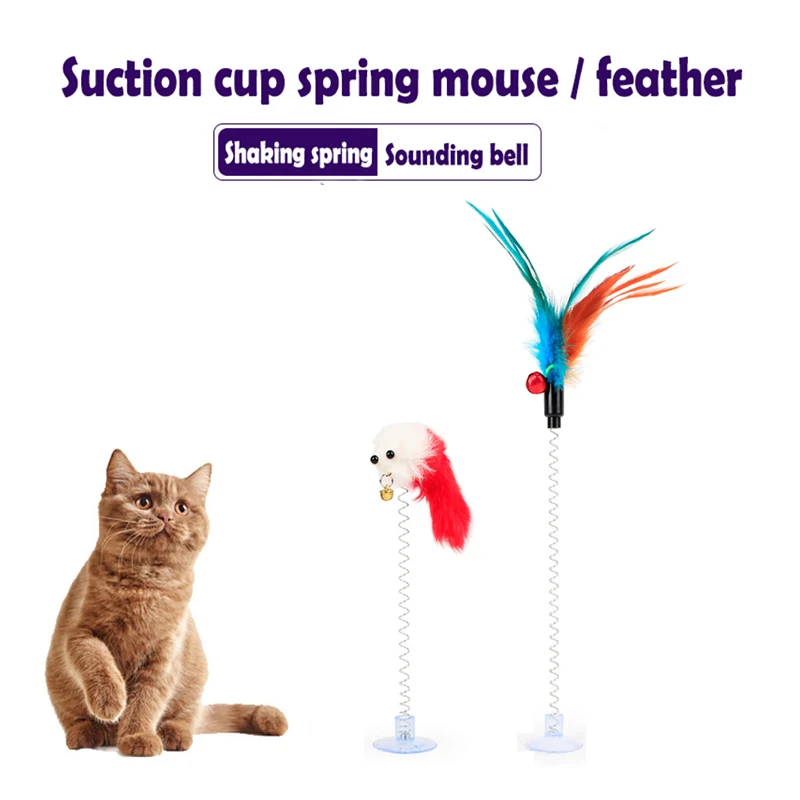 1 шт. забавная игрушка для кошек интерактивные всасывания Весна Pet игрушка с колокольчиком кошка с вращающимся пером нижней присоской игрушка для кошки "Дразнилка" домашних животных кошка игрушка