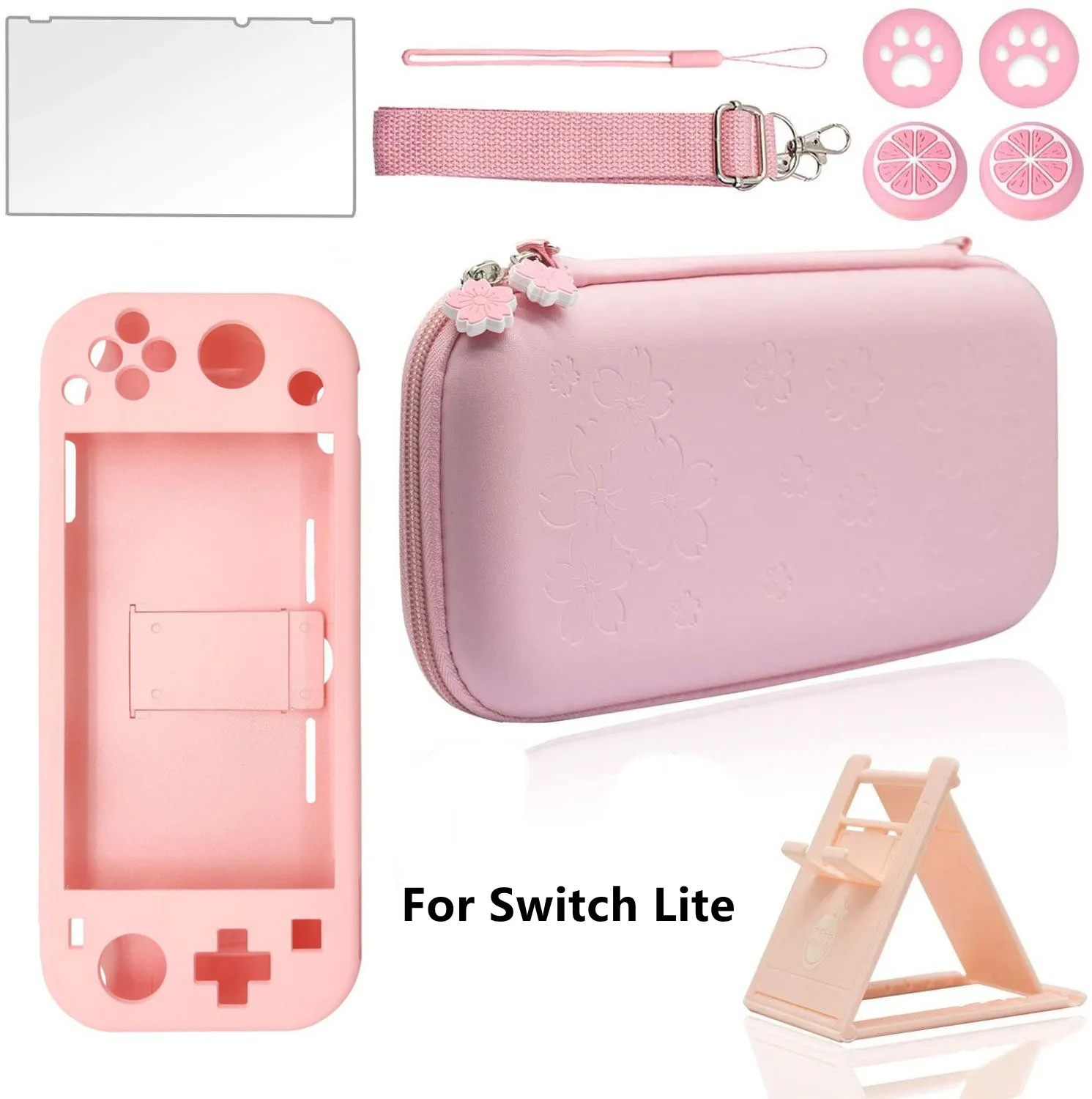 10 в 1 для Nintendo Switch Switch Lite Pink Sakura дорожная сумка в комплекте подставка захваты для большого пальца Защитная крышка стеклянная пленка