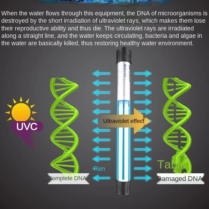 1. Стерилизатор должен быть помещен в бак фильтра, не может положить его непосредственно в аквариум.