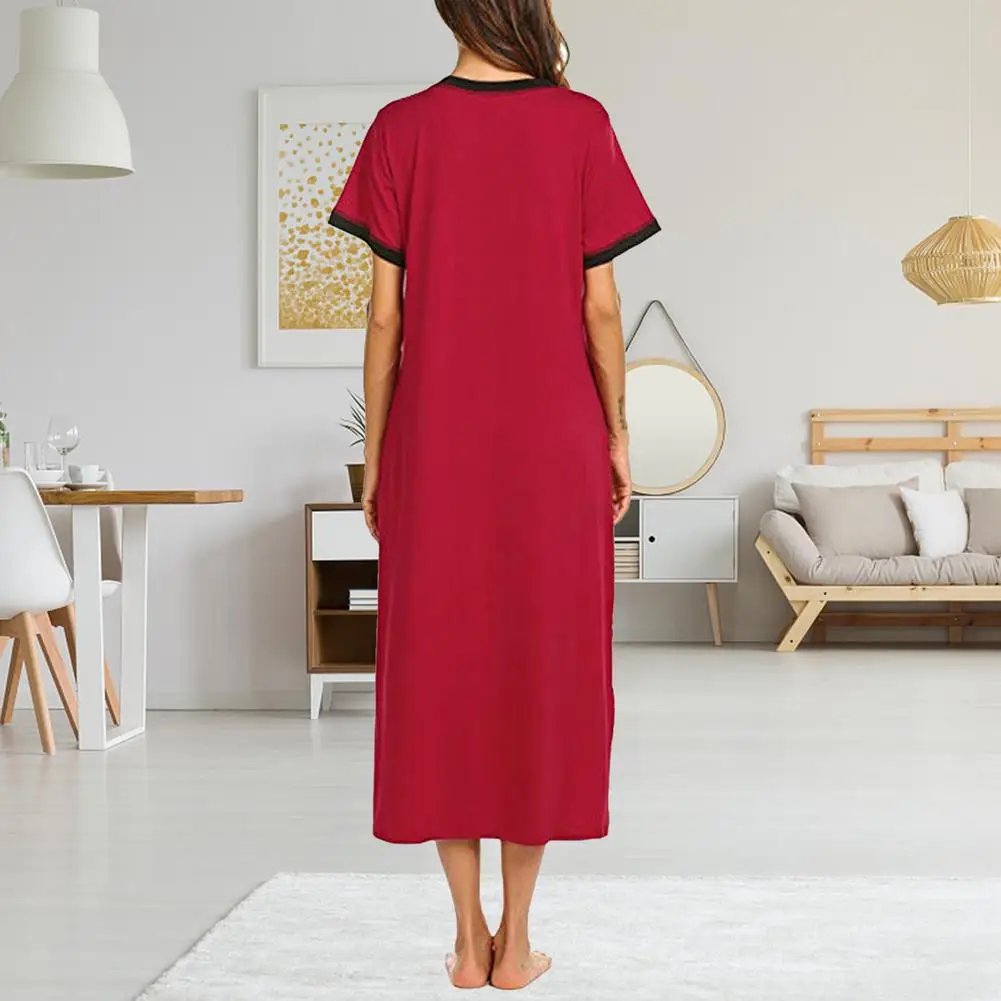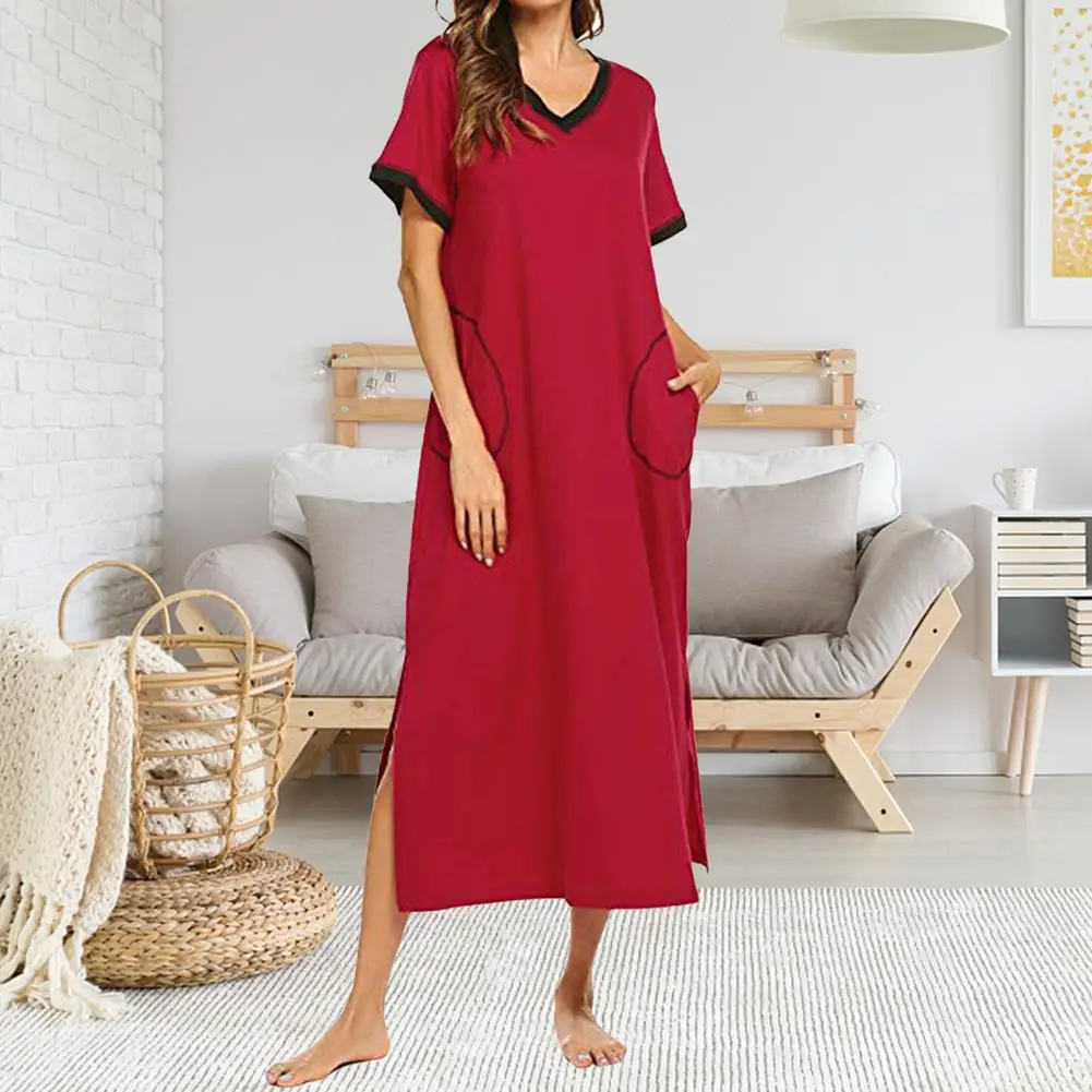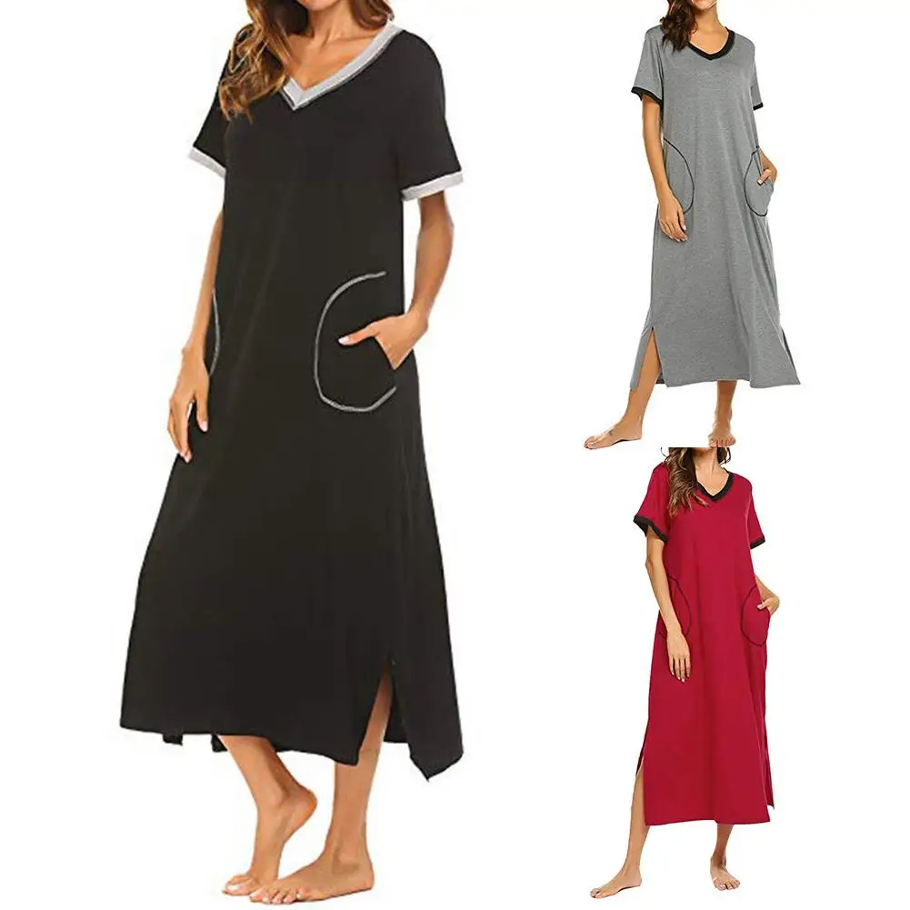 Номер моделиSummer Ladies Sleep Dress Slit Dress Pocket Short-sleeved V-neck Dress