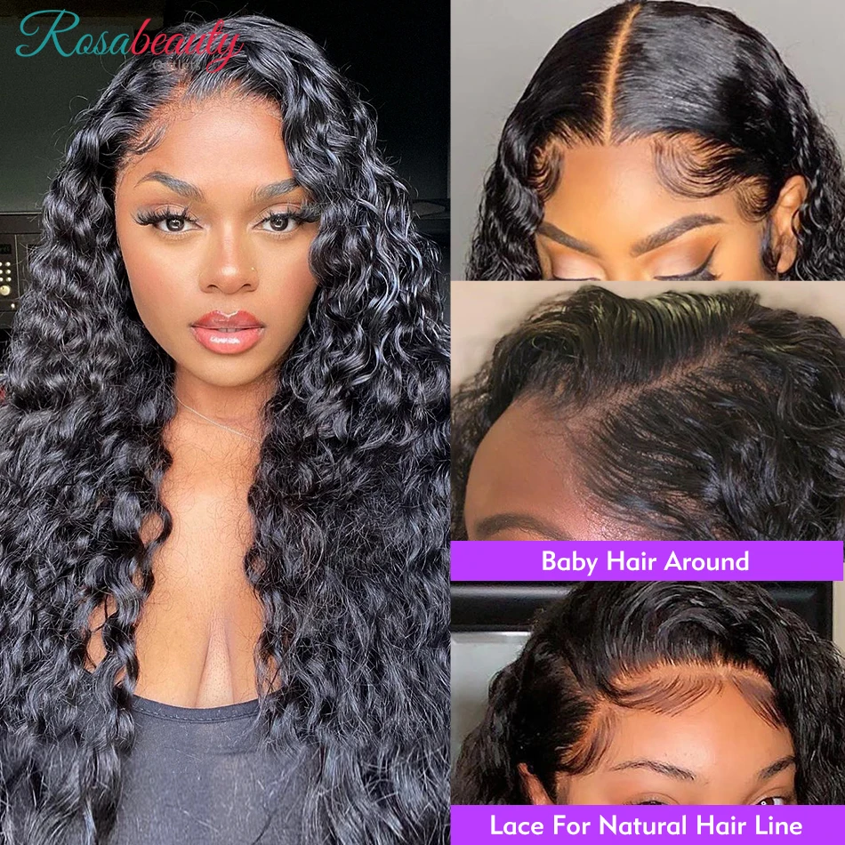 Парик Rosabeauty кудрявый из натуральных человеческих волос 13x 4 на сетке спереди, Детские волосы, бразильский парик с глубокой волной и безглазной застежкой для черных женщин