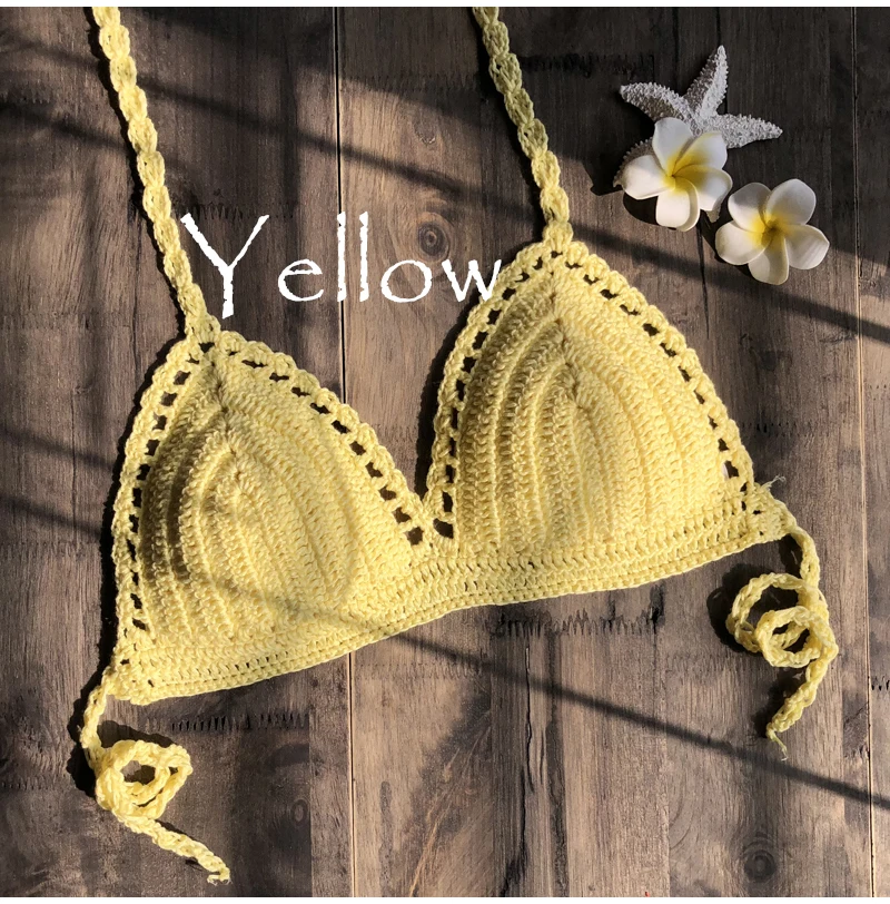 Однотонные бикини купальник Mujer, вязаный крючком красный топ бикини, сексуальные бикини, женский бюстгальтер для плавания, большой женский Купальник S-XL, новинка 2021