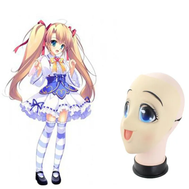 Латексная Маска HKSNG на все лицо с большими глазами для девушек, полуголовы, маска кигуруми, мультяшный косплей, японское аниме, ролевая маска, Лолиты, кросс-платье, кукла