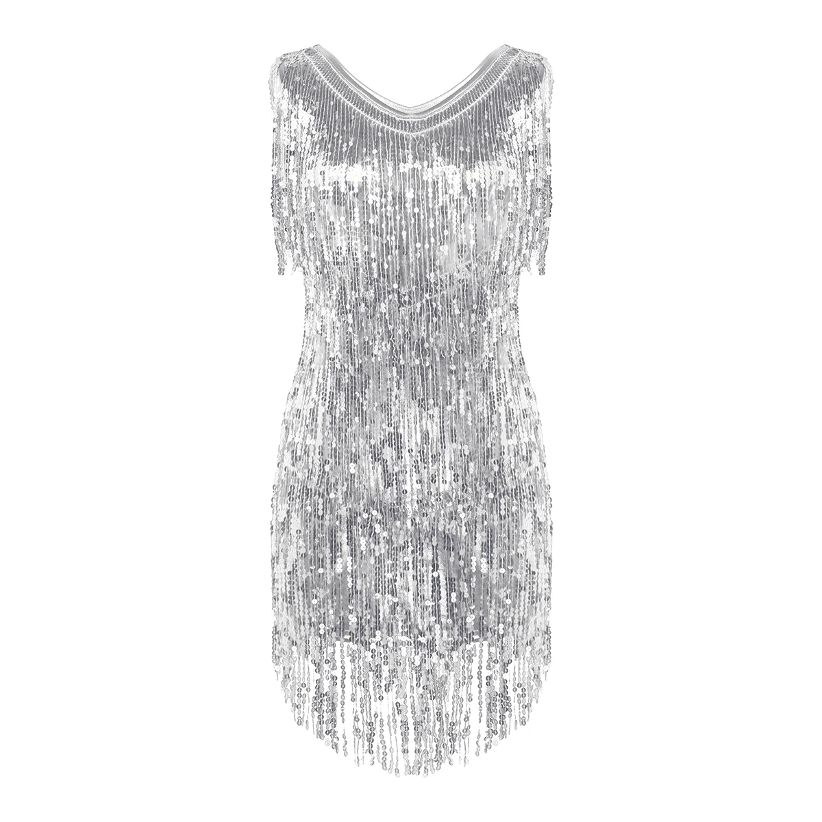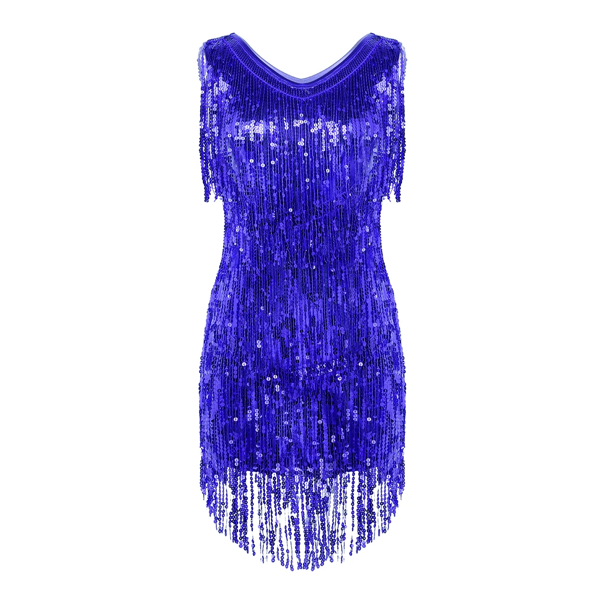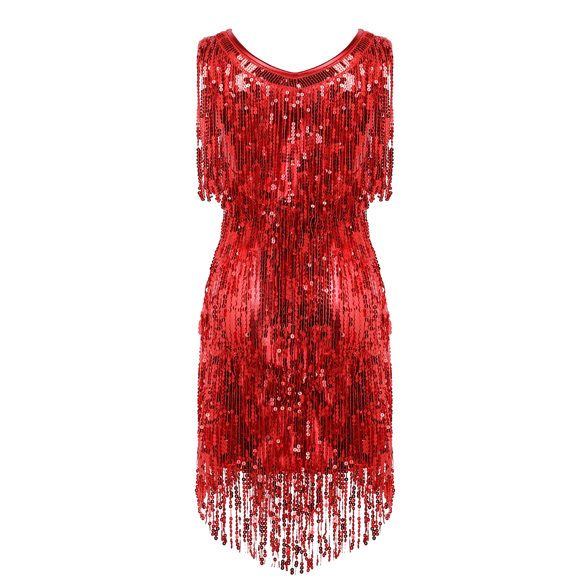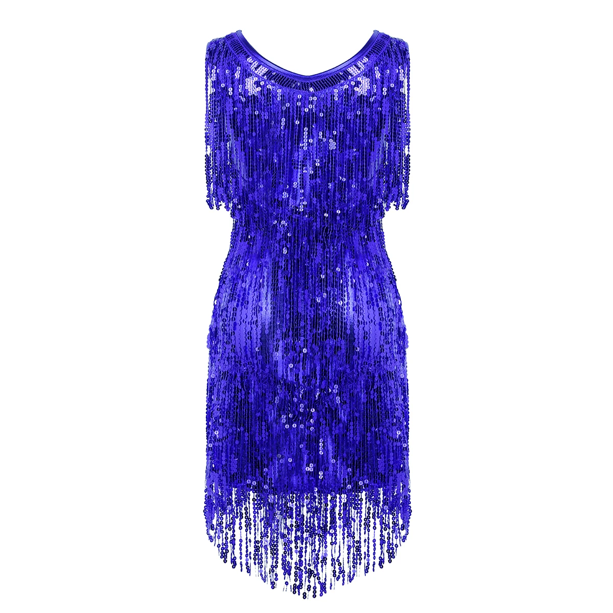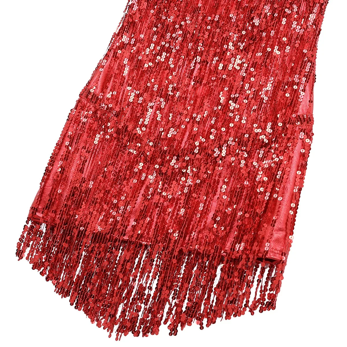 # M-XXL женское платье с v-образным вырезом без рукавов с блестящими блестками и кисточками для бальных танцев