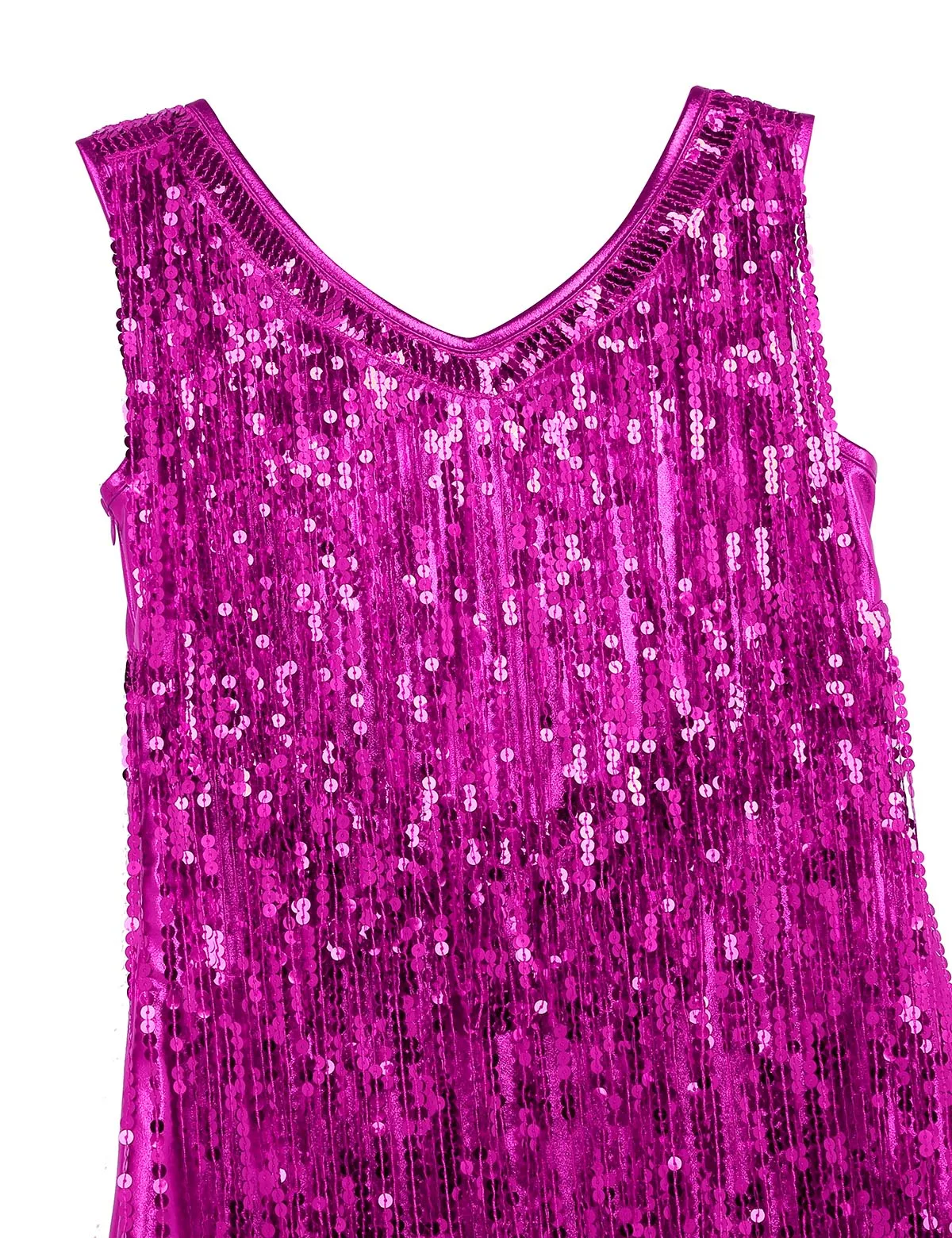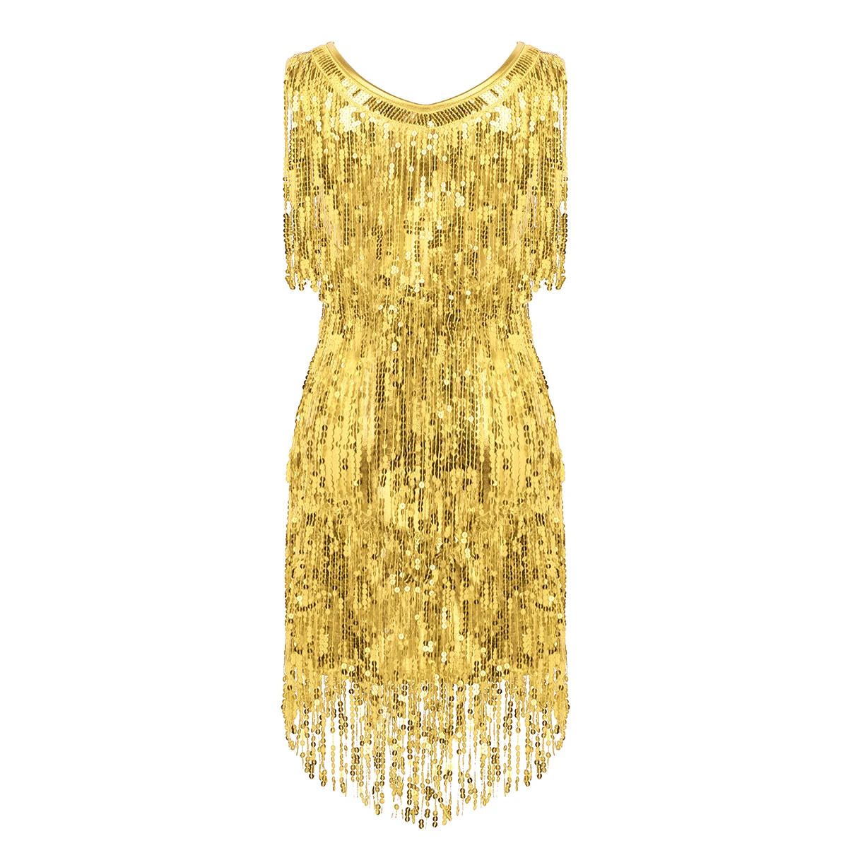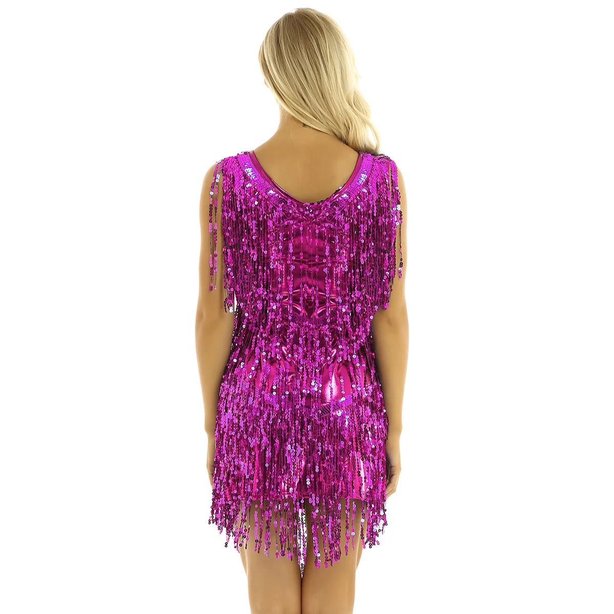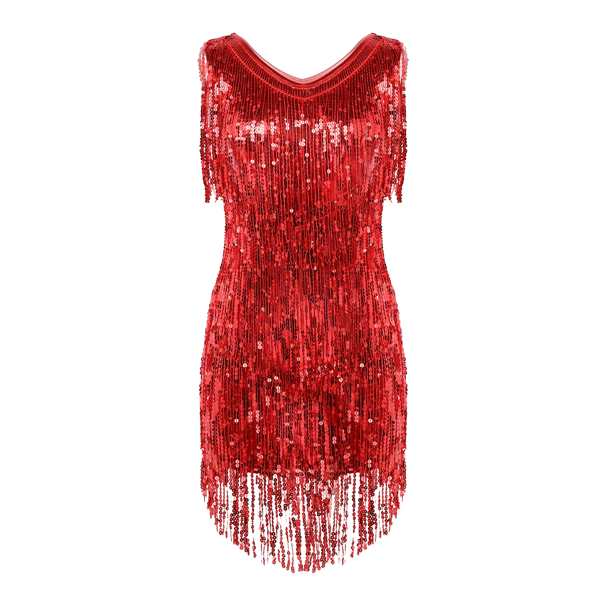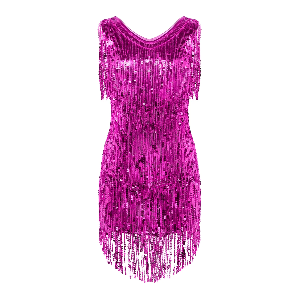 # M-XXL женское платье с v-образным вырезом без рукавов с блестящими блестками и кисточками для бальных танцев