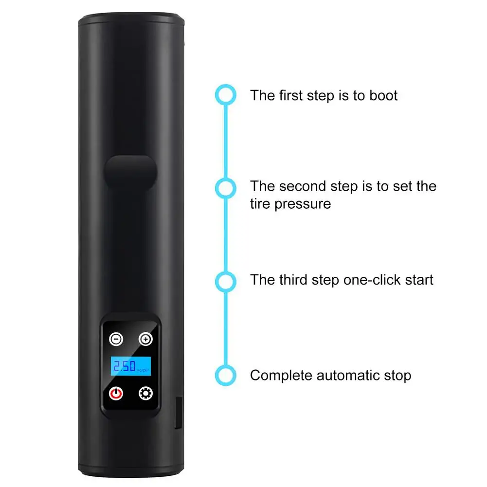 Описание:1. Усовершенствованный аккумулятор емкостью 2000 мАч: Этот портативный воздушный компрессор оснащен встроенным сертифицированным перезаряжаемым литий-ионным аккумулятором емкостью 2000 мАч и USB-портом для зарядки для быстрой зарядки.2. Цифровой манометр с ЖК-дисплеем: 4 дополнительных единицы измерения, PSI, BAR, KPA, кг/см². Вы можете установить давление в шинах на желаемое устройство и проверить давление в шинах в любое время. Когда значение надувания достигнет заданного значения, воздушный насос автоматически остановит надувание, что поможет избежать чрезмерного надувания. Пожалуйста, не забудьте нажать кнопку включения, чтобы выключить после использования.3. Использование ночью: яркий COB светильник удобен для аварисветильник освещения в темноте. Цифровой ЖК-дисплей с подсветкой делает удобным накачивание автомобильных шин и чтение стоимости ночью.4. Беспроводной и портативный: насос для накачки шин беспроводной, компактный и портативный, им можно управлять одной рукой.5. Универсальный насос для шин: максимальное давление накачки составляет 150 фунта на кв. дюйм, подходит для автомобилей, мотоциклов, мячей, надувных бассейнов, плавательных колец, надувных игрушек и т. д. Совместим с более чем 90% надувных продуктов на рынке.Характеристики:Название: портативный воздушный компрессорЕмкость аккумулятора: 2000 мАчСамое длинное непрерывное время работы: 30 мин.КПД: 22 л/минМаксимальное давление в шинах: 150PSI / 10.3BAR / 990KPA/10,5 кг/смЕдиница давления: PSI, BAR, KPA, кг/см2Рабочая температура: -20 °C + 70 °CРабочая мощность: 120 ВтНапряжение: 12,4 вТок: 5АПрожектор: 70 люменВес нетто: около 460 гРазмер продукта: около 260*60*48 мм/10,24*2,36*1,89 дюймаДлина внешнего воздушного шланга: около 15 см/5,91 дюймаУпаковочный лист:1 * портативный воздушный компрессор1 * автомобильный зарядный кабель1 * USB-кабель для зарядки3 * Воздушное сопло1 воздушная трубка1 * РуководствоВажно:1. Детям запрещено использовать насос! Храните в недоступном для детей месте! Никогда не вставляйте воздушную трубку в рот, уши и глаза живых животных и не используйте инфлятор в качестве игрушки!2. Запрещено использовать этот насос в местах, где есть рядом воспламеняющиеся и опасные жидкости и газы (например, на АЗС)!3. Не уходите, используя насос для надувания. Через 8 минут непрерывного использования необходимо выключить и прекратить использование на 8 минут.4. Если во время надувания появляется аномальный шум или слишком высокая температура, немедленно выключите насос и дайте ему остыть (не менее 15 минут). Будьте осторожны при снятии воздушной трубки, так как она может быть нагретой.5. Изделие устойчиво к дождю, воде и ударам.6. Если вы не собираетесь использовать насос в течение длительного времени, его необходимо хранить в сухом и закрытом месте. Для длительного хранения рекомендуется заряжать его каждые 3 месяца.7. Перед использованием перезаряжаемого насоса проверьте, полностью ли он заряжен. Первая зарядка-4 часа. Этот насос должен быть полностью заряжен, и светильник катор выключается, как только насос полностью заряжен.Примечания:Из-за световых эффектов и углов съемки возможна небольшая разница в цвете, надеемся на понимание.