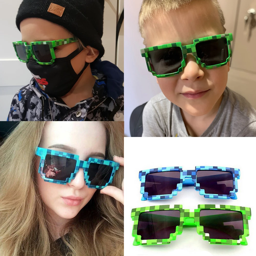 Очки солнцезащитные LJCZKA для детей горячая Распродажа, очки Крипера, модные мозаичные очки, Пиксельная оправа для мальчиков и девочек, 2021