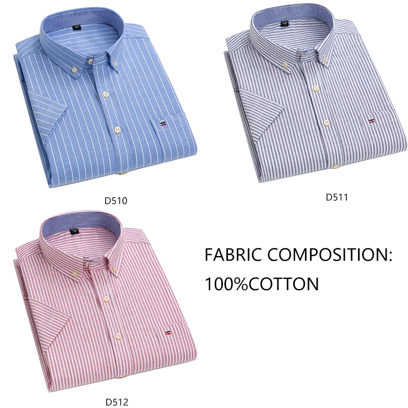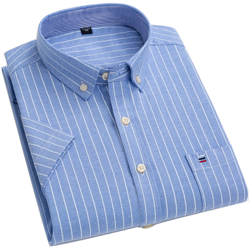 Рубашка AOLIWEN мужская с коротким рукавом, брендовая немнущаяся Повседневная сорочка из ткани Оксфорд, мягкая приталенная, 100% хлопок, в полоску, большие размеры