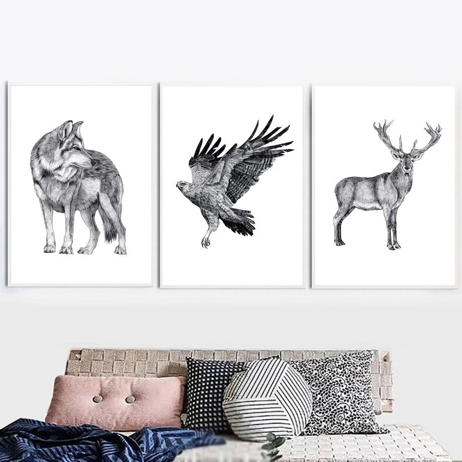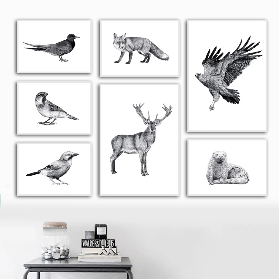 Настенная картина черного и белого цвета, Орлан, ворона, птица, лиса, олень, волк, Картина на холсте, постеры и принты в скандинавском стиле, настенные картины для декора гостиной