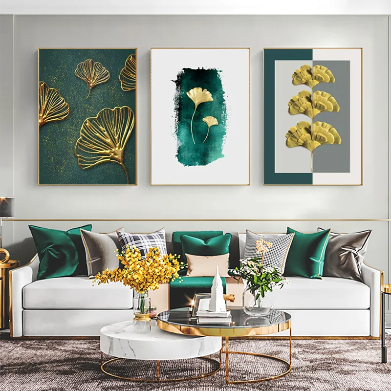 Постер с абстрактным изображением желтого золота растений и листьев, Роскошное винтажное художественное изображение на холсте, украшение для гостиной
