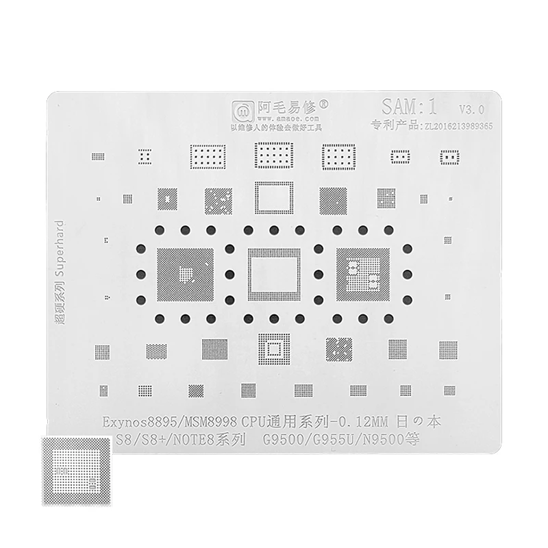 Amaoe SAM1 BGA трафарет для реболлинга для Samsung S8 Plus Note 8 G9500 G955U N9500 Exynos 8895 MSM8998 CPU RAM IC Chip Steel Mesh