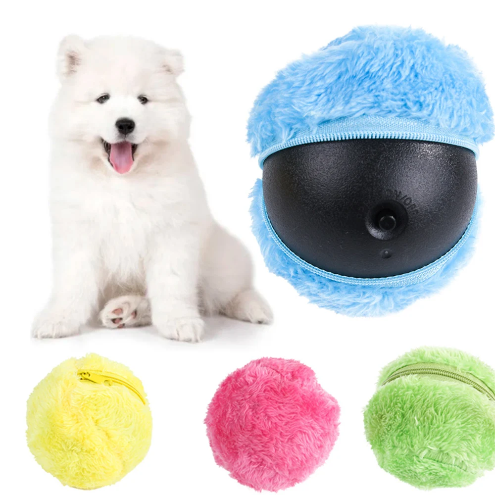 Волшебный роликовый мяч с автоматической активацией, игрушка для собак и кошек, Жевательная плюшевая игрушка для чистки пола, Электрический автоматический плюшевый мяч для питомца