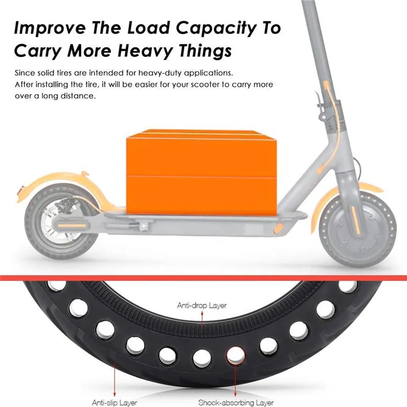 2. Разработан с множеством сот, которые могут быстрее рассеивать тепло и служить в течение более длительного времени. Сменная шина для скутера также обеспечивает более равномерную нагрузку и поглощение ударов, что обеспечивает лучшую амортизацию.