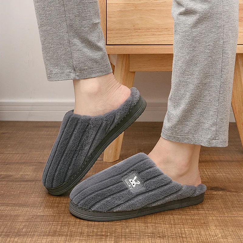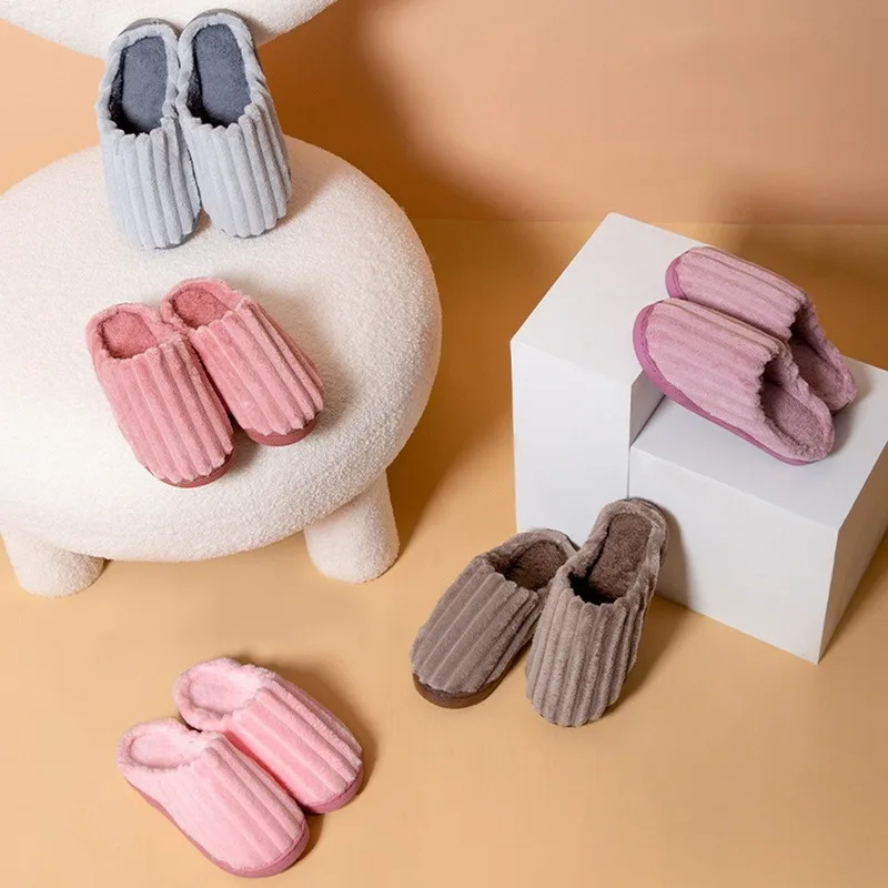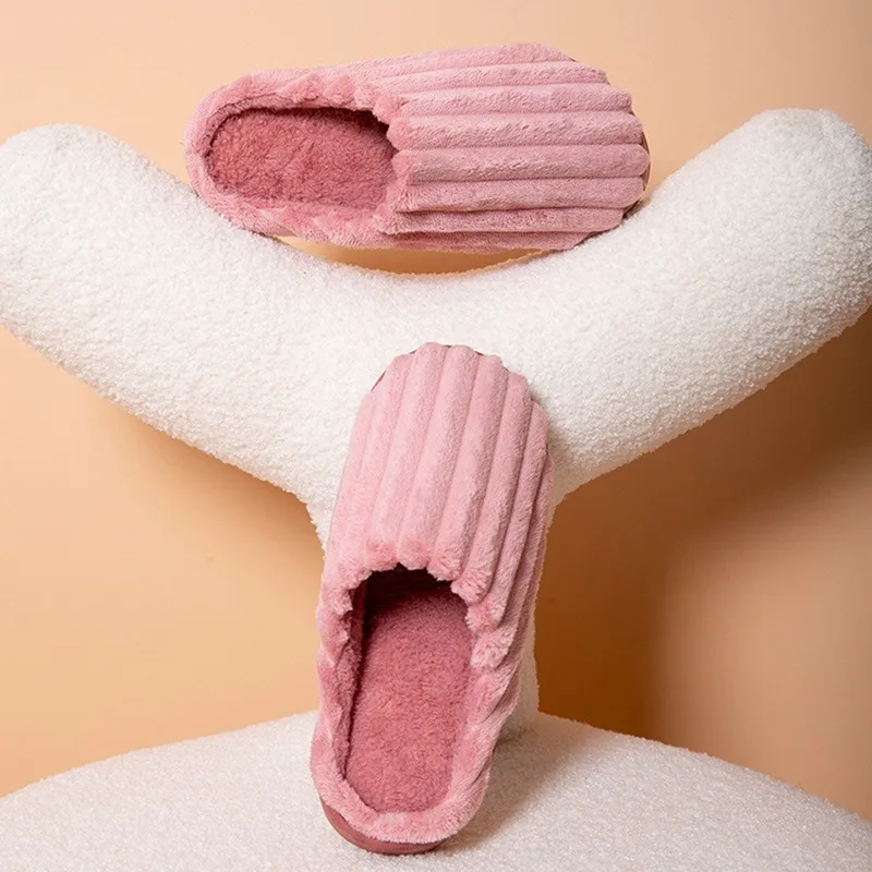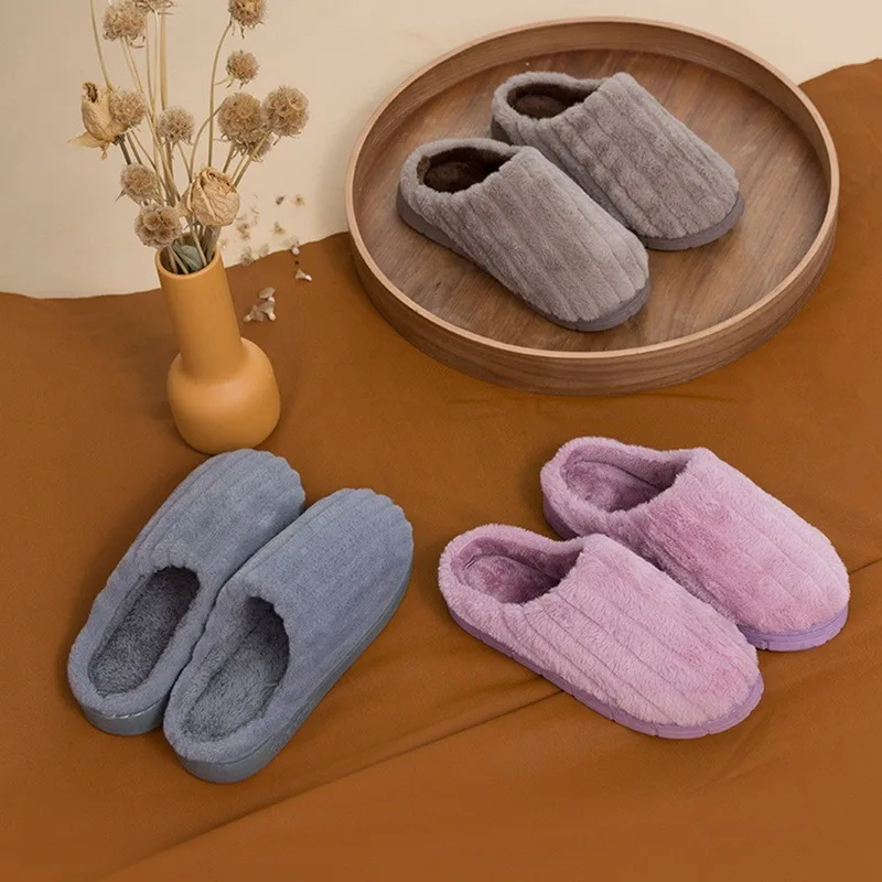 Шлепанцы для мужчин и женщин, мягкие Нескользящие, теплые, домашняя обувь, сланцы, в полоску, для спальни, сланцы, Повседневные тапочки, Осень-зима