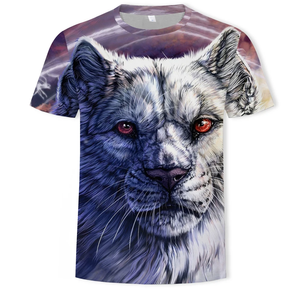 Мужская футболка с коротким рукавом, с 3D принтом льва и тигра, 2021
