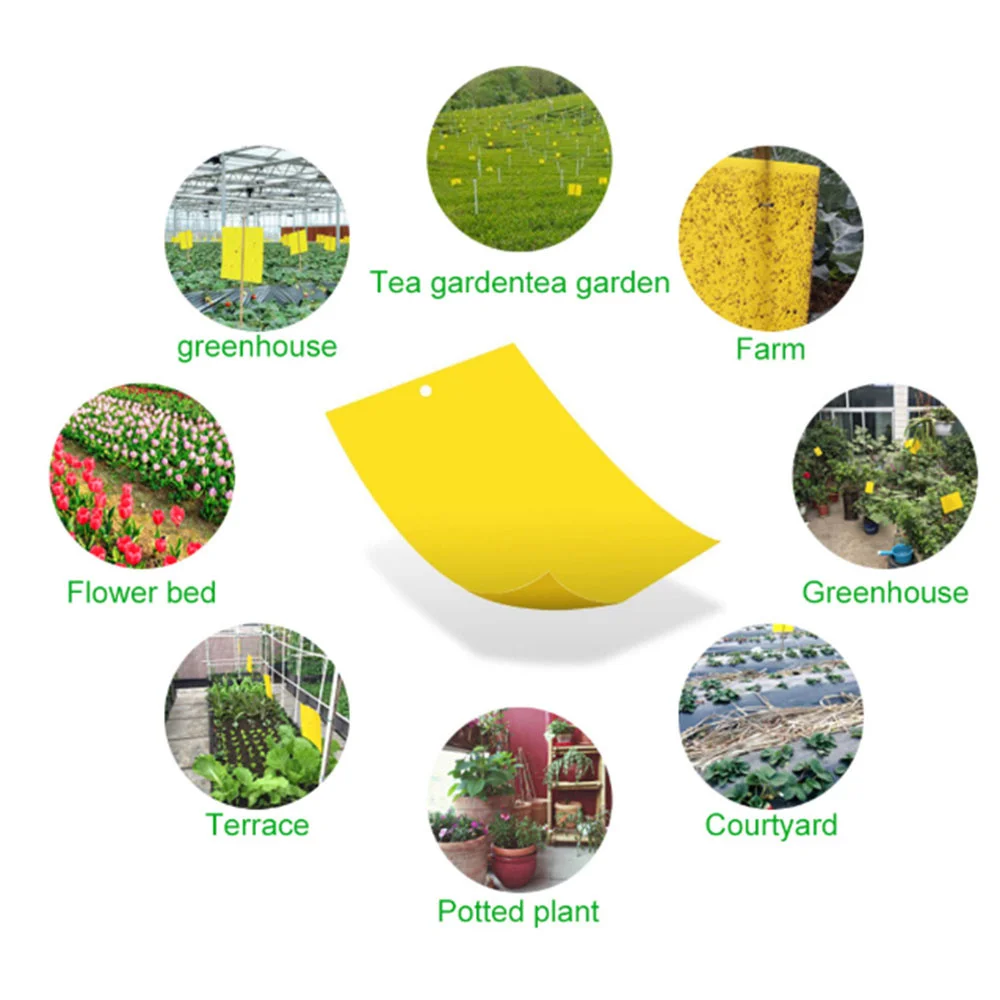 Специально разработан для летающих вредителей растений, которые любят желтый цвет и легко ловят их. Широко захватывает тли, Майнер листьев, грибковые гнаты, трипы, Белые мухи, черные мухи, мошки, Комары и другие летающие насекомые.