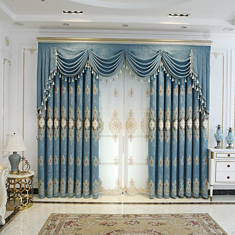 Шторы в европейском стиле для гостиной, спальни светильник Роскошные шениловые шторы с вышивкой, шторы для дверей и окон синего цвета