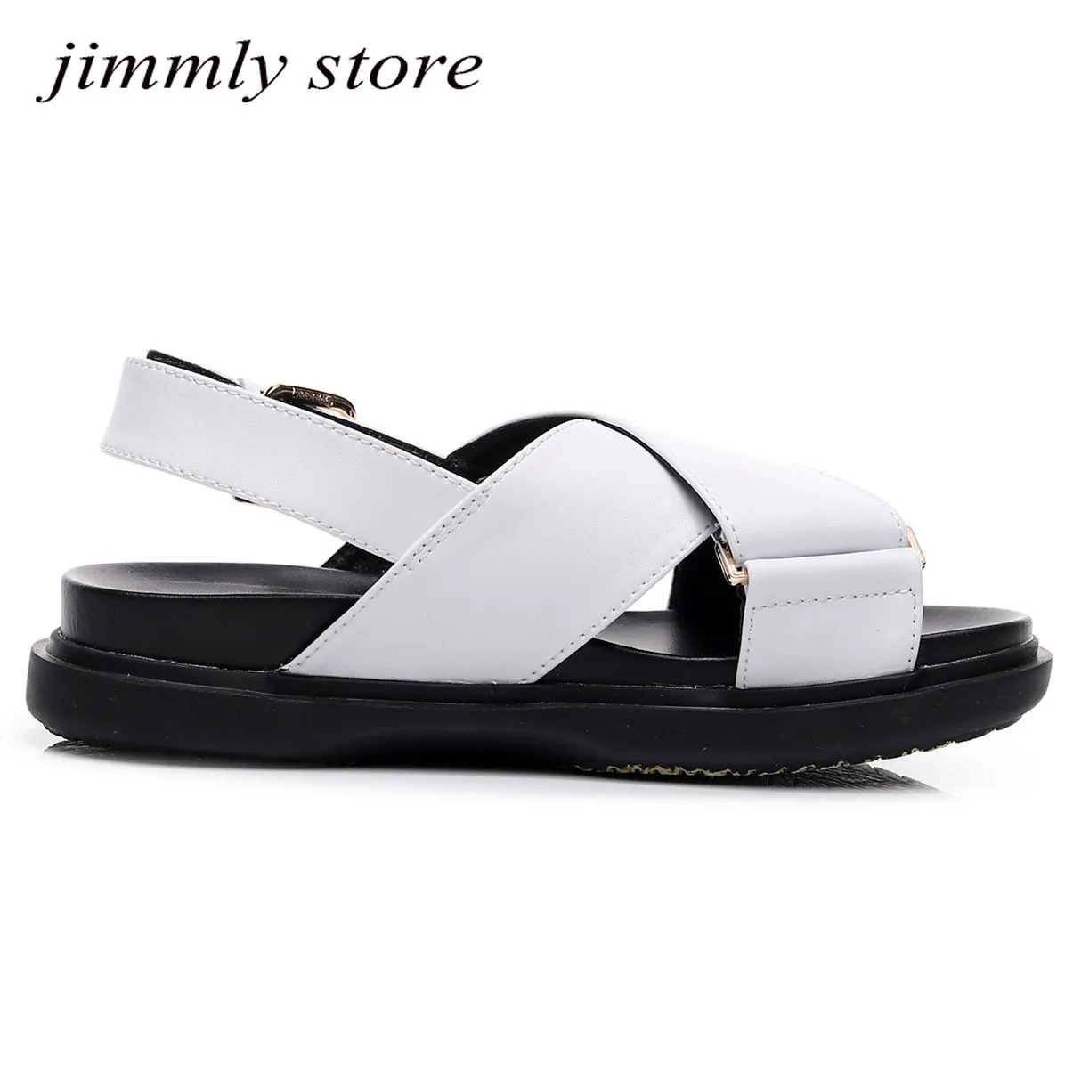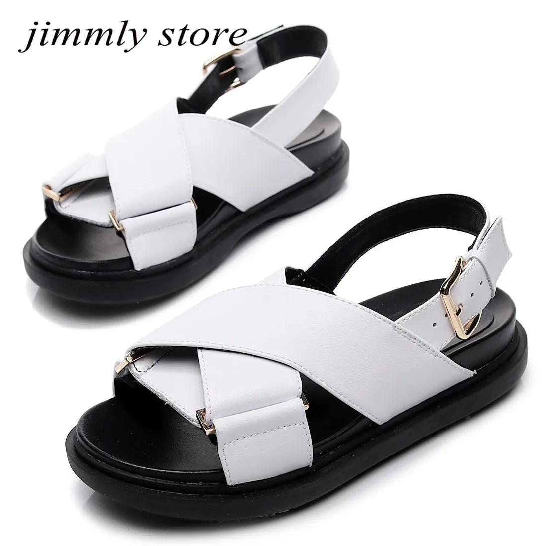 Сандалии женские с открытым носком, пляжная обувь, повседневная обувь для офиса, плоская подошва, пряжка, белый цвет, модель Лето 2021