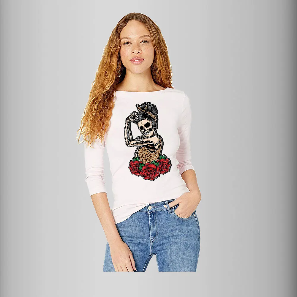 Новый Череп розовый цветок Переводные переводы Красота Женщины тепл...