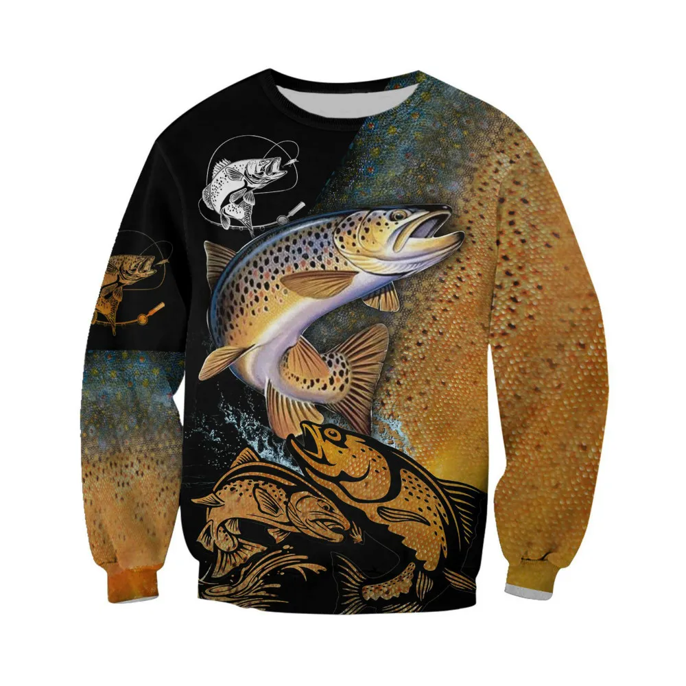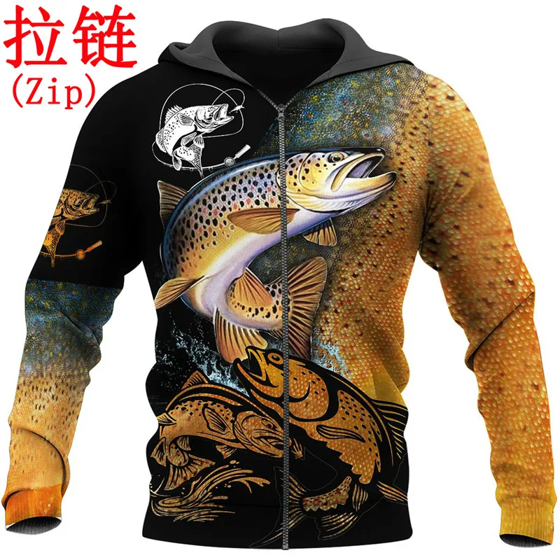 Свитер в стиле Харадзюку для мужчин и женщин, повседневный Свитшот унисекс на молнии с 3D-принтом форели, 2021