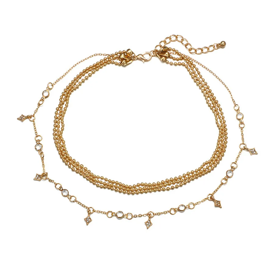 Ожерелье женское, многослойное, с кристаллами, в стиле ретро