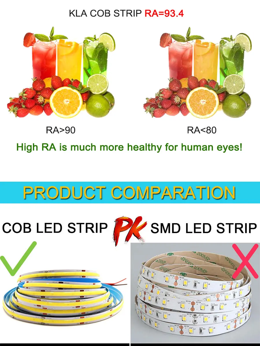 Светодиодная лента FOB COB 12 в 24 В гибкая 5 мм 8 мм 10 мм ширина RA 90 высокая яркость Светодиодная лента световая полоса холодный синий белый красный зеленый розовый желтый