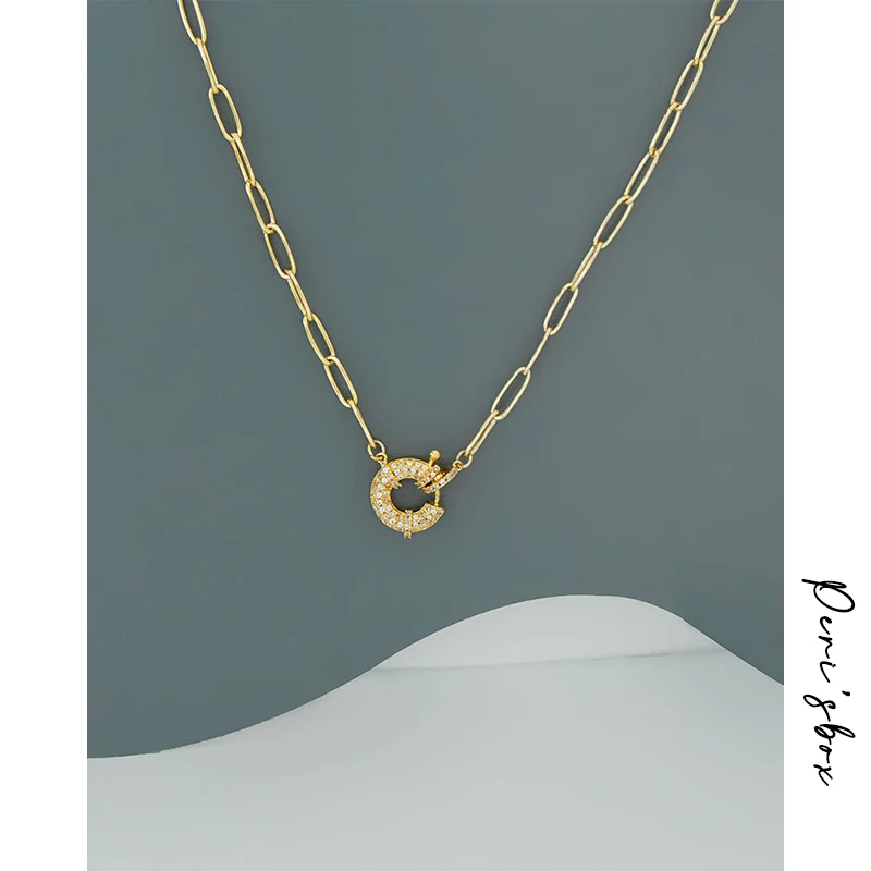Ожерелье Peri'sBox золотистого цвета, прямоугольная цепочка со сверкающими кольцами из циркония, романтическая скрепка для вечерние