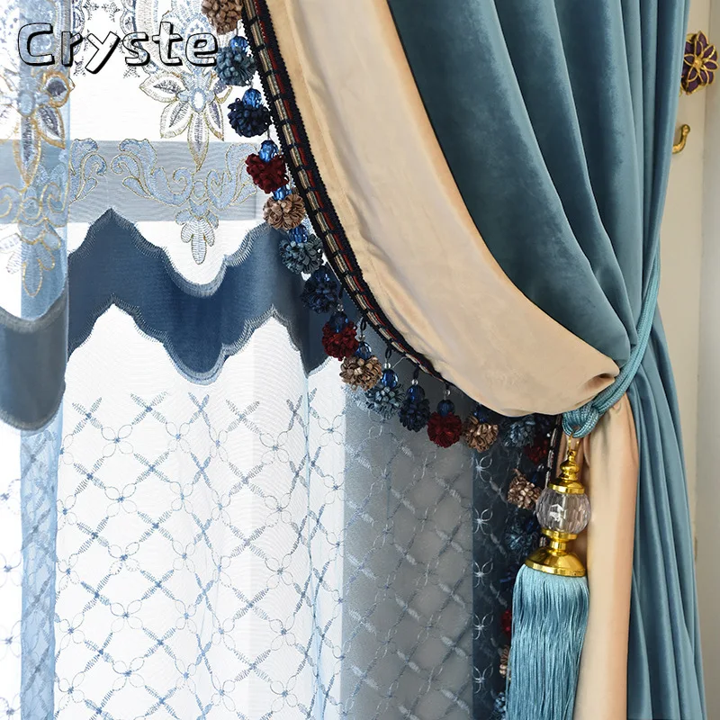 Европейский стиль вышитые шенилл занавески теплоизоляция и затенение готовые на заказ занавески для гостиной столовой спальни