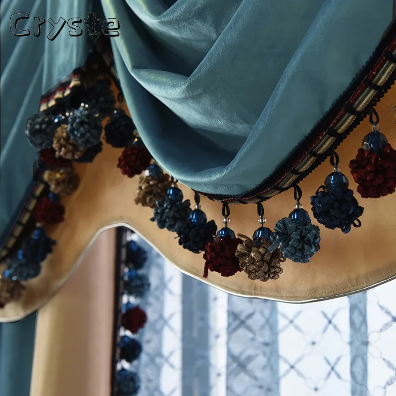 Европейский стиль, занавески для гостиной, столовой, спальни, кофейного цвета, синель, виллы, гостиной, вышитые занавески, Valance
