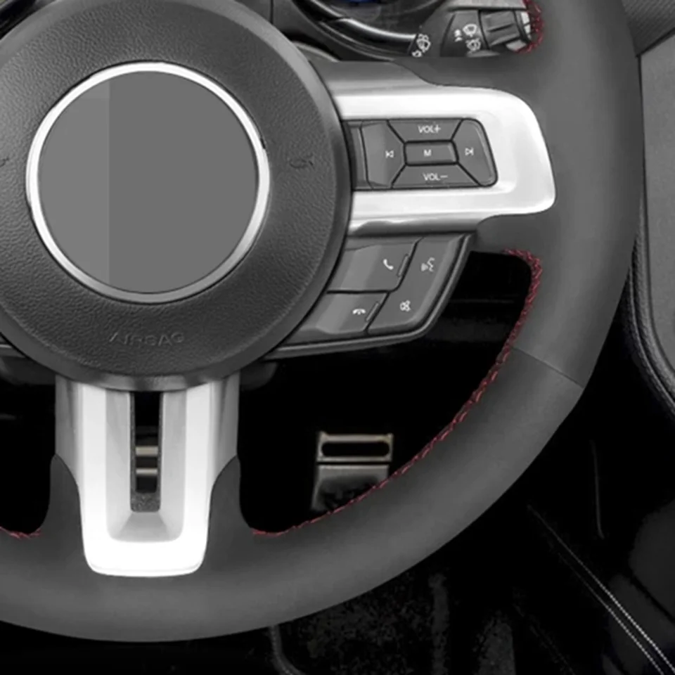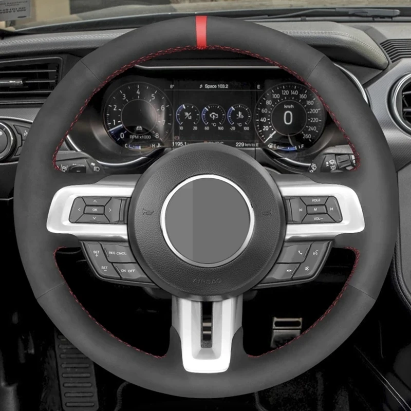 Чехол рулевого колеса автомобиля DIY Нескользящая черная замша для Ford Mustang 2015 2017 2018 2019 Mustang GT 2015 2017 2018 2019