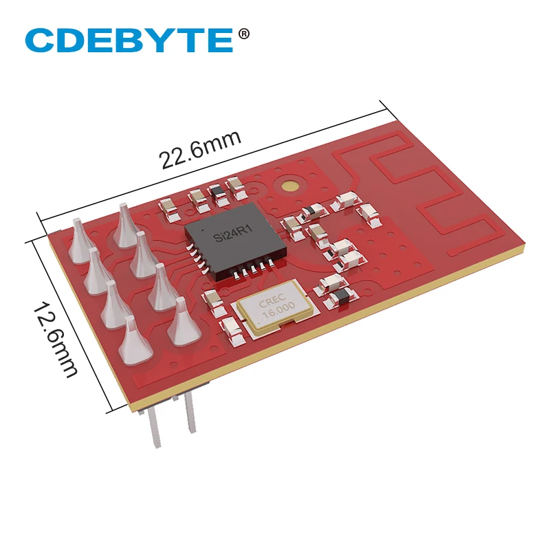 [Введение]:E01C-ML01D представляет собой маленький размер DIP модуль на основе Si24R1, работает при температуре не выше 2,4 ГГц с антенной на печатной плате с использованием промышленного класса Высокоточный 16 МГц кварцевый генератор. Производительность ИТ-оборудования и выбор компонентов во время исследований и разработок соответствуют стандартам промышленного класса.