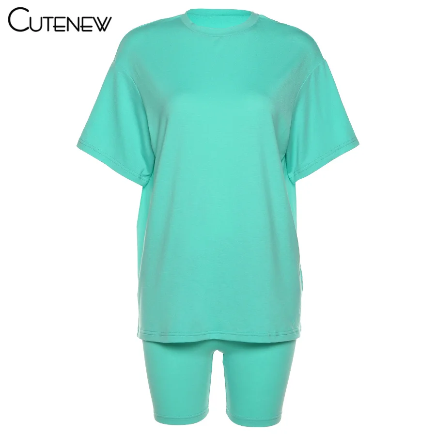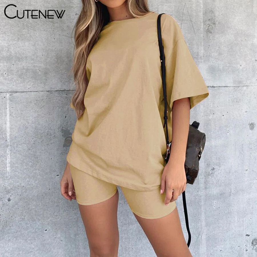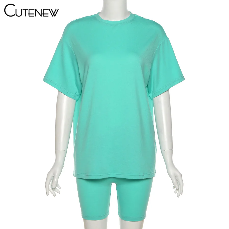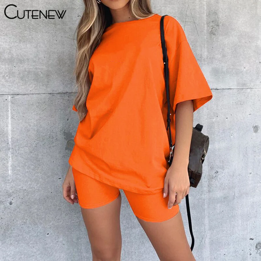 Женский Повседневный костюм, Однотонная футболка с коротким рукавом и круглым вырезом и шорты, удобная спортивная уличная одежда для фитнеса