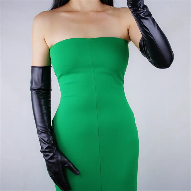 70 см Экстра длинные кожаные перчатки Над Локоть эмуляции кожи овчи...
